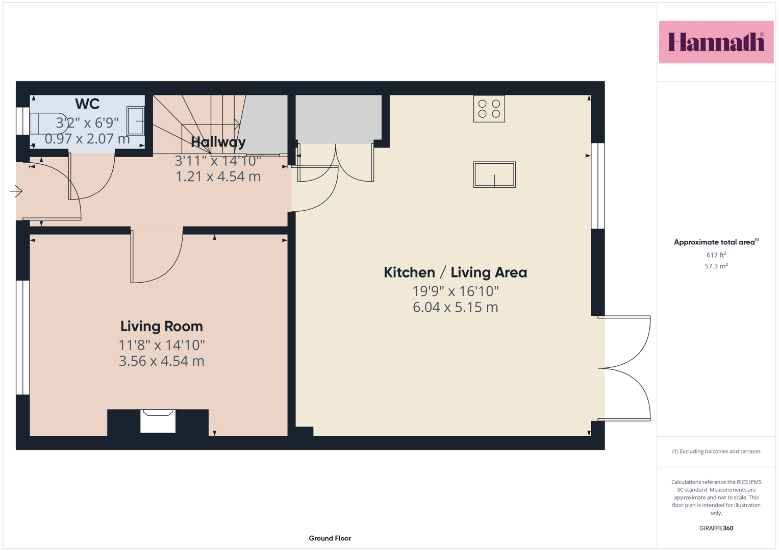 Kitchen/Living/Dining area 19'9 X 16'10 (6.02m X 5.13m)