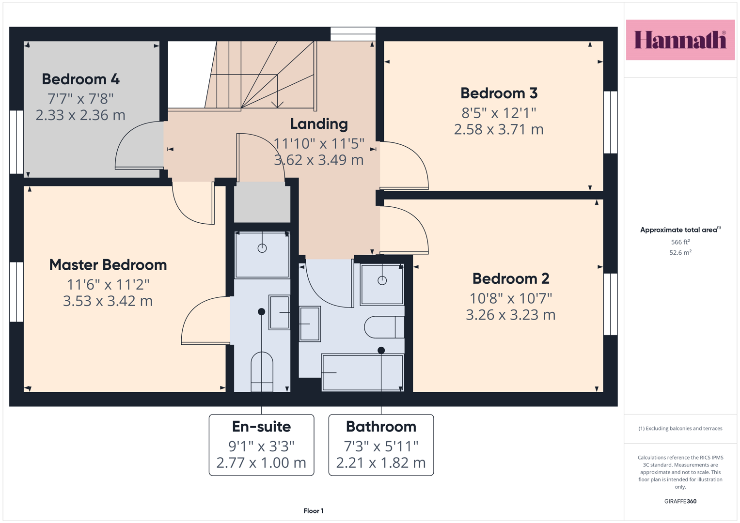 Master Bedroom 11'6 X 11'2 (3.51m X 3.40m)