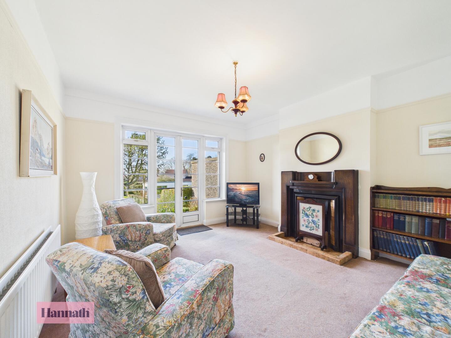Feature fireplace, in carpet, radiator, patio doors to rear