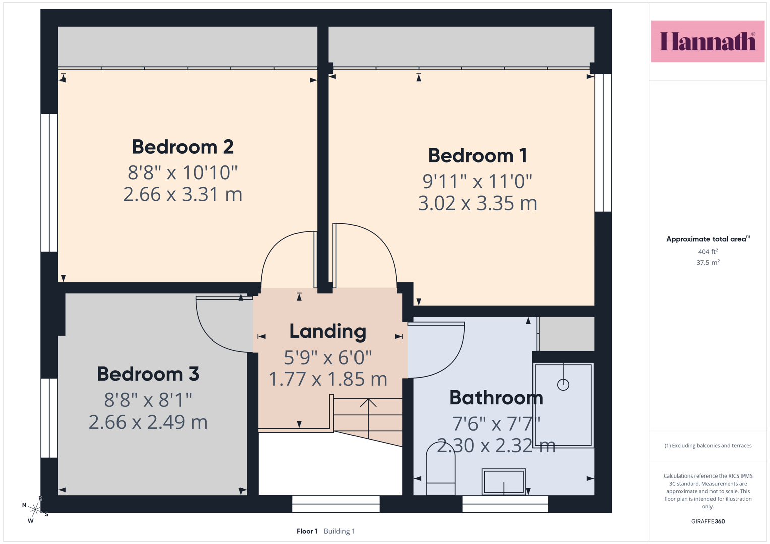 Landing 5'9" X 6'0" (1.77m X 1.85m)