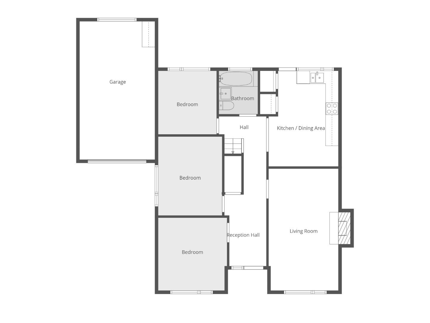 One of the standout features of this bungalow is the staircase leading up to a completely opened loft space. This versatile area presents an exciting opportunity, as it has enough room to accommodate two additional bedrooms and a bathroom, should you wish to expand your living space further.
