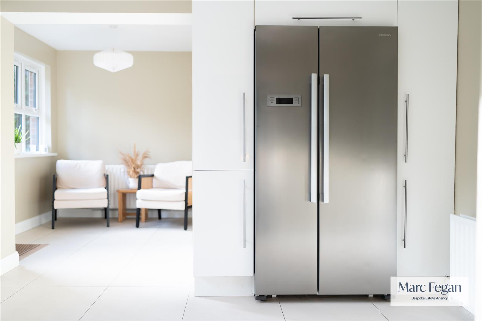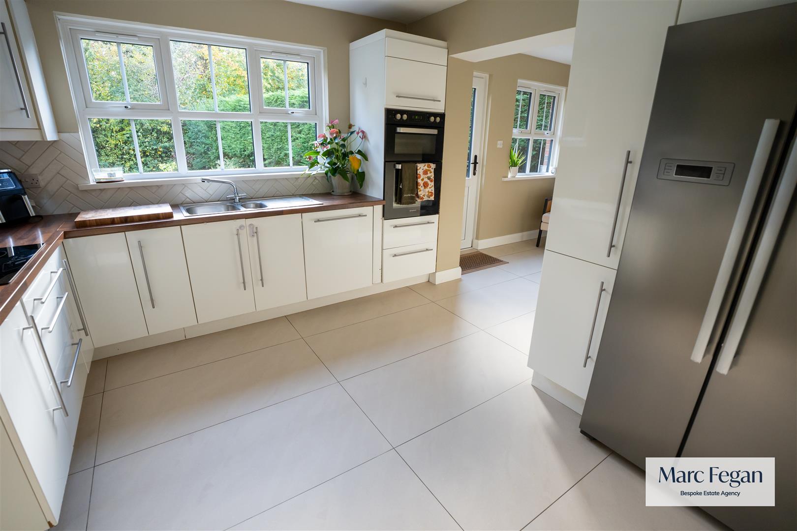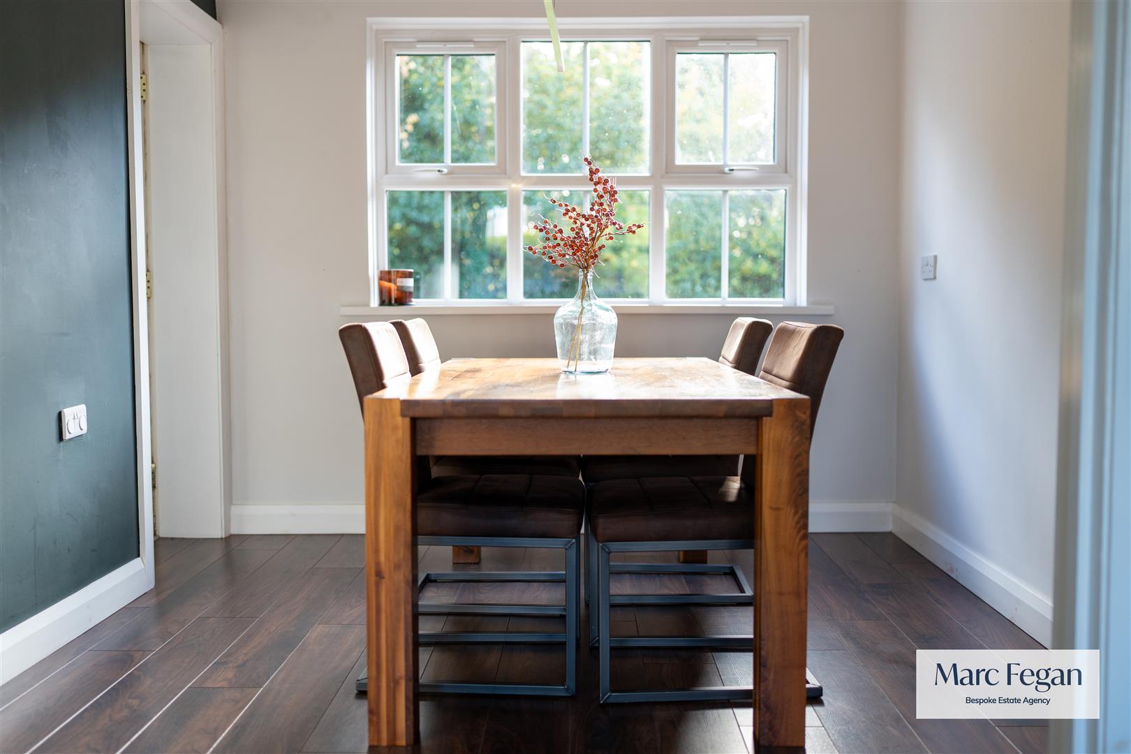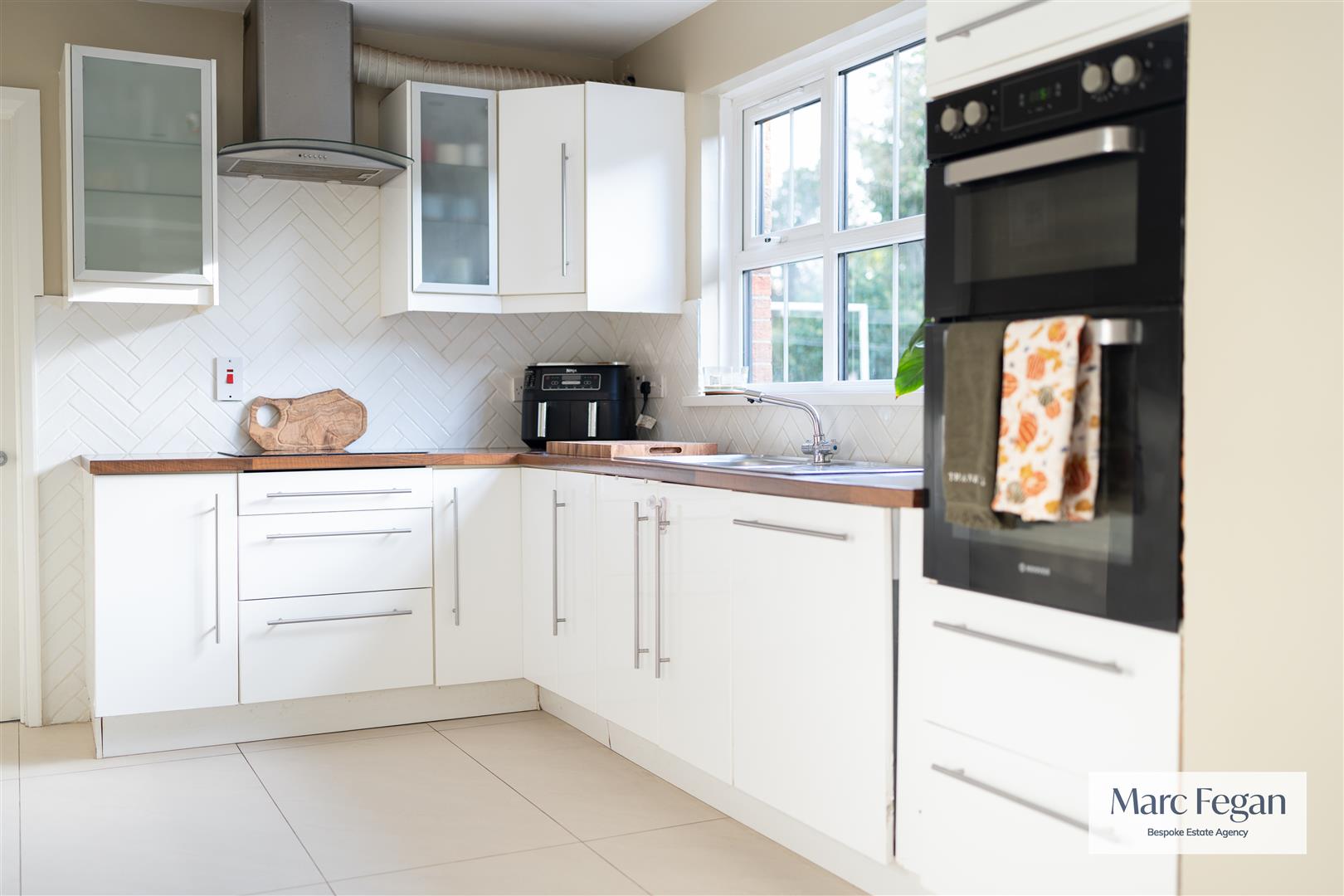 The heart of the home is undoubtedly the luxury L-shaped kitchen, which is equipped with an integrated double oven and opens seamlessly into a large dining area, perfect for family meals and gatherings. Set on a private corner site, the property boasts stunning paving that enhances its curb appeal, while the integral garage offers secure parking. The spacious tarmac driveway accommodates up to three vehicles, making it particularly suitable for families with multiple cars.