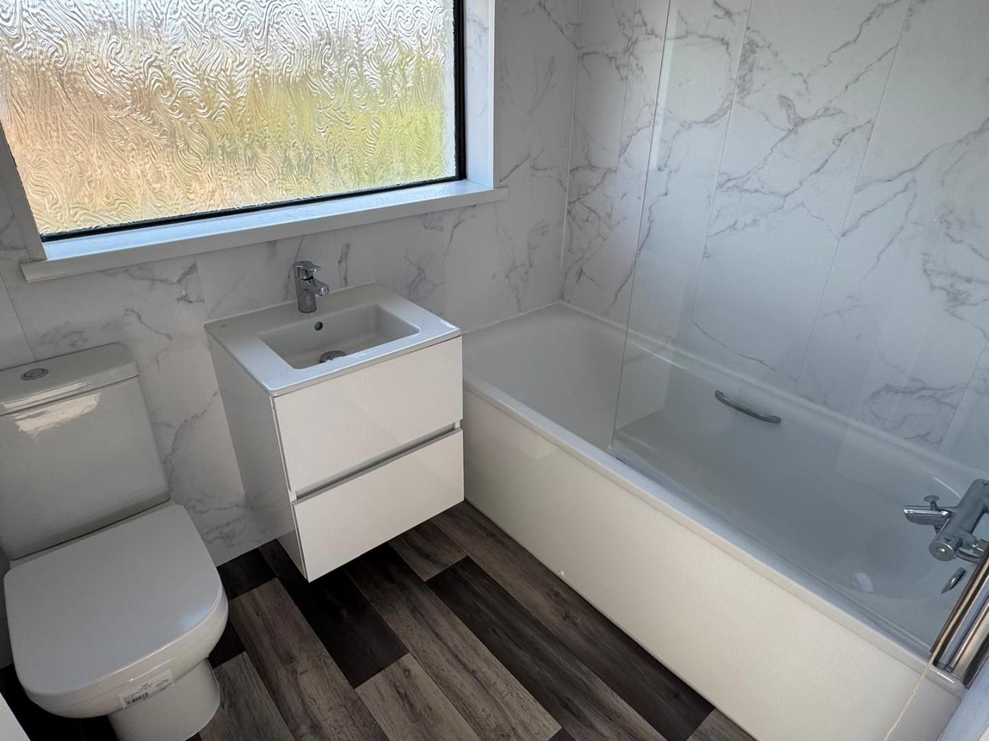 Upstairs, the property offers three well-proportioned bedrooms along with a contemporary bathroom, fitted with a modern suite including bath and finished with clean, neutral tiling.