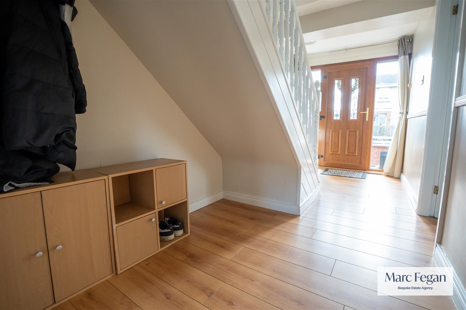 Externally, there is a good-sized enclosed rear garden laid in lawn with a patio area and direct access to the attached garage. The garage also benefits from side access.