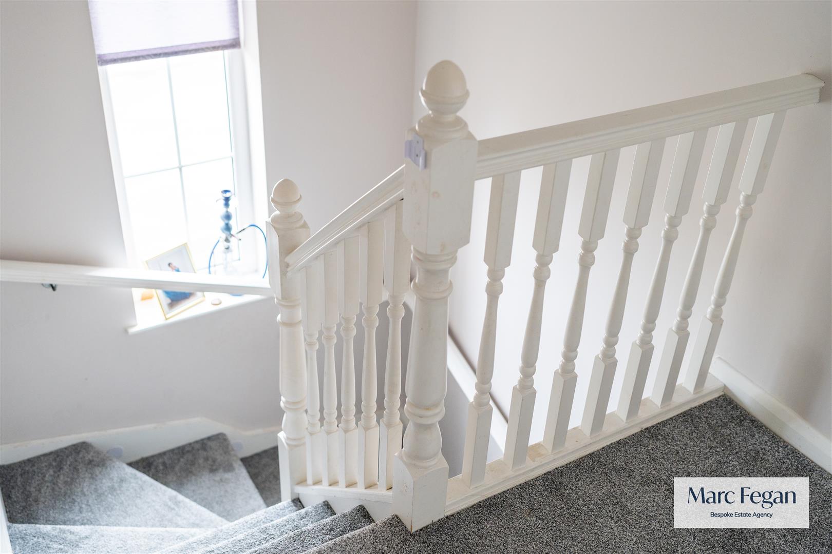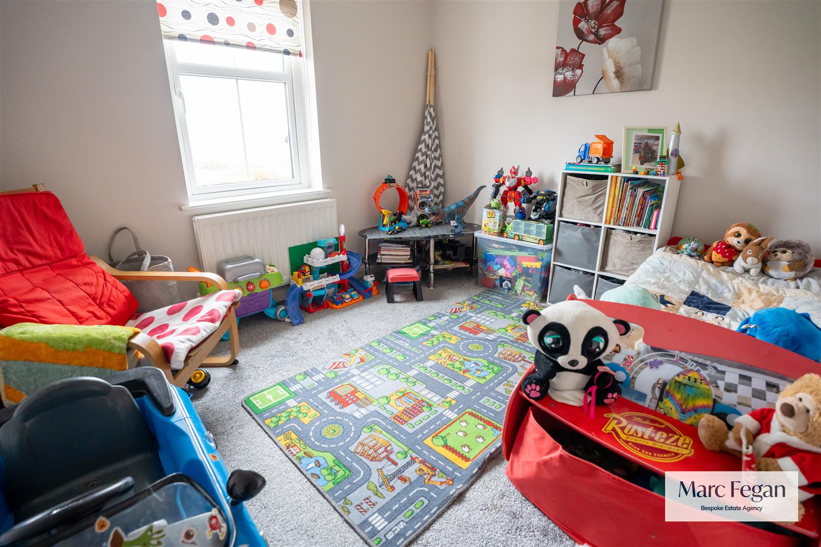 The first floor provides four bedrooms including three doubles and one single bedroom with fitted storage. The primary bedroom benefits from a modern three piece ensuite, with a separate three piece family bathroom serving the remaining rooms. Some of the rear bedrooms enjoy views towards Lough Neagh.