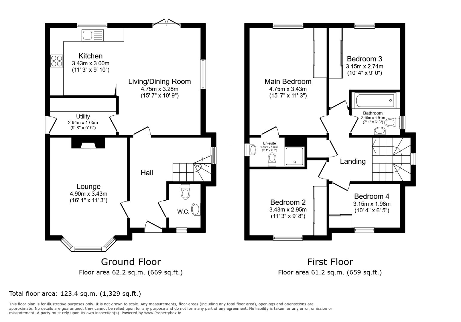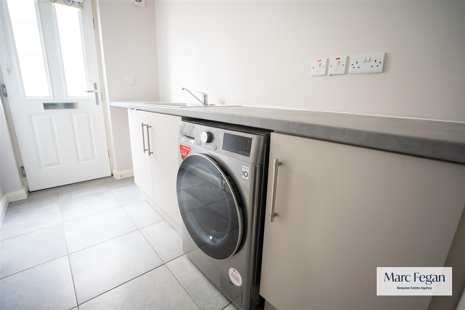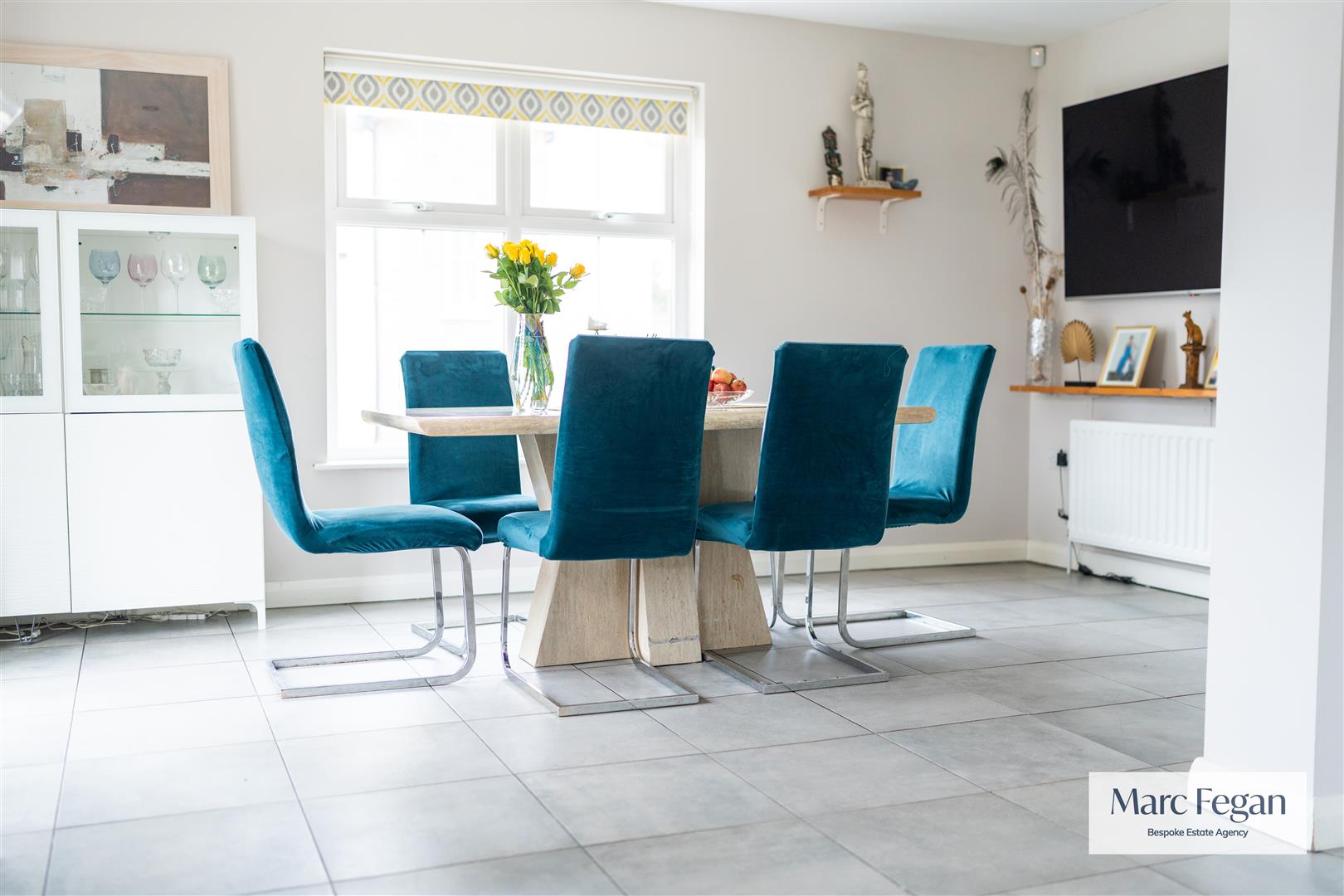 The property offers spacious and well planned accommodation throughout. The ground floor comprises a bright lounge with bay window and multi fuel stove, a modern open plan L-shaped kitchen, dining and living area with integrated fridge freezer, oven and hob, along with double doors leading to the rear garden. A separate utility room and downstairs WC add further practicality.
