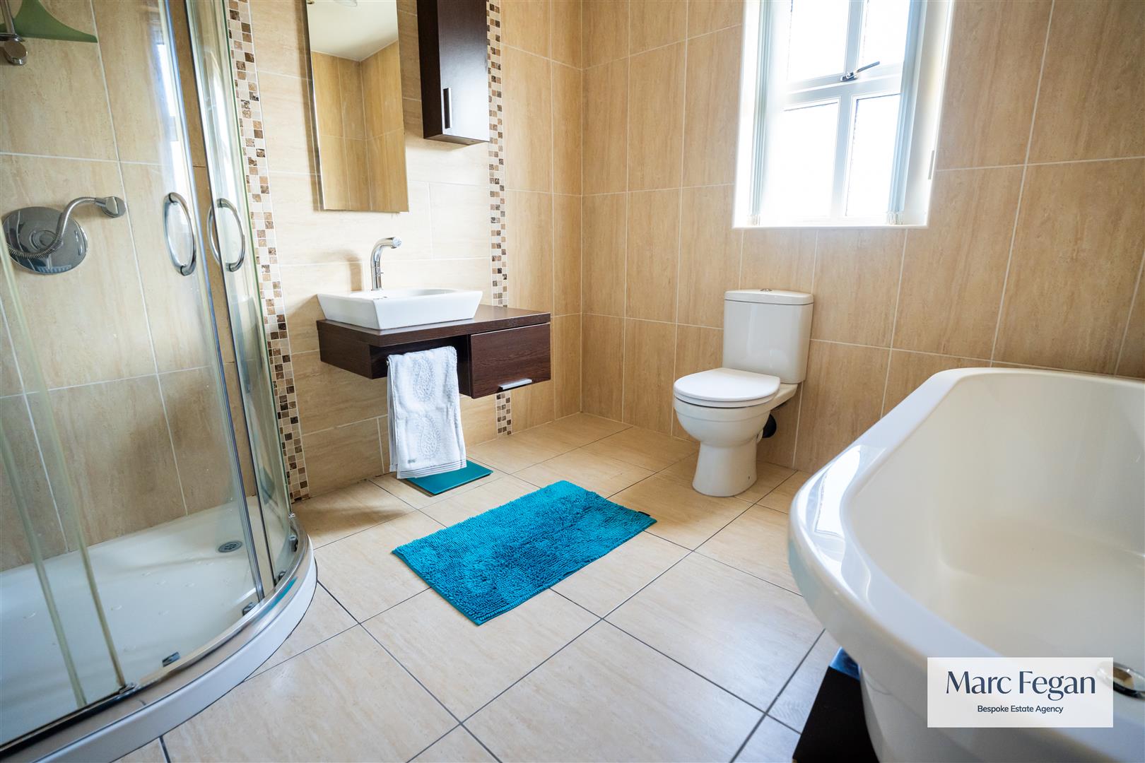 The first floor offers three well proportioned bedrooms including a primary bedroom with modern three piece ensuite. A contemporary four piece family bathroom is also located on this level, featuring a freestanding bath and mains shower.