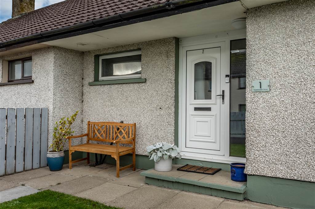 Fully enclosed property bunded by wooden fencing, gate and wall. Garden in lawn to front with paved area. Enclosed concrete area to rear. Outside tap. Outside lights.