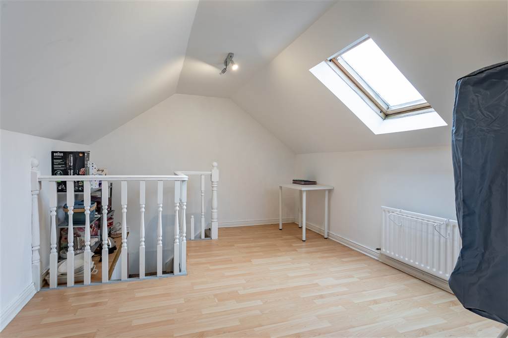 With built-in storage cupboard. Velux window. Laminated wooden flooring.