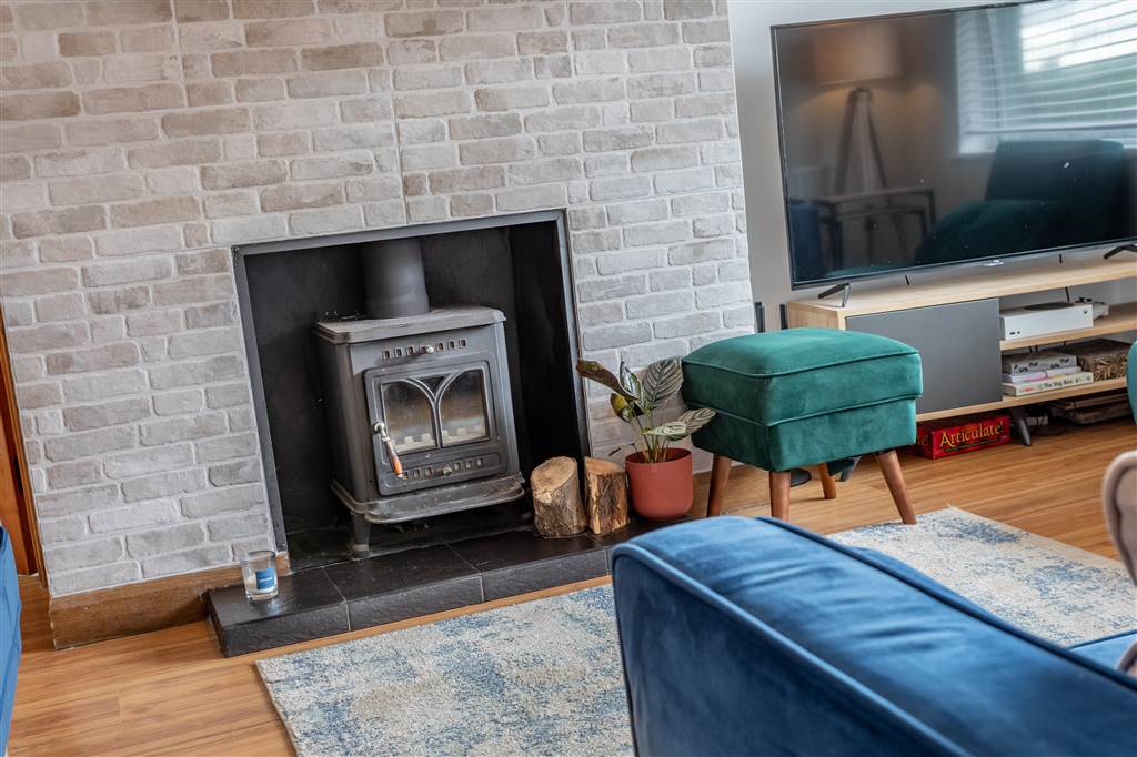 Living room with multi-fuel burning stove