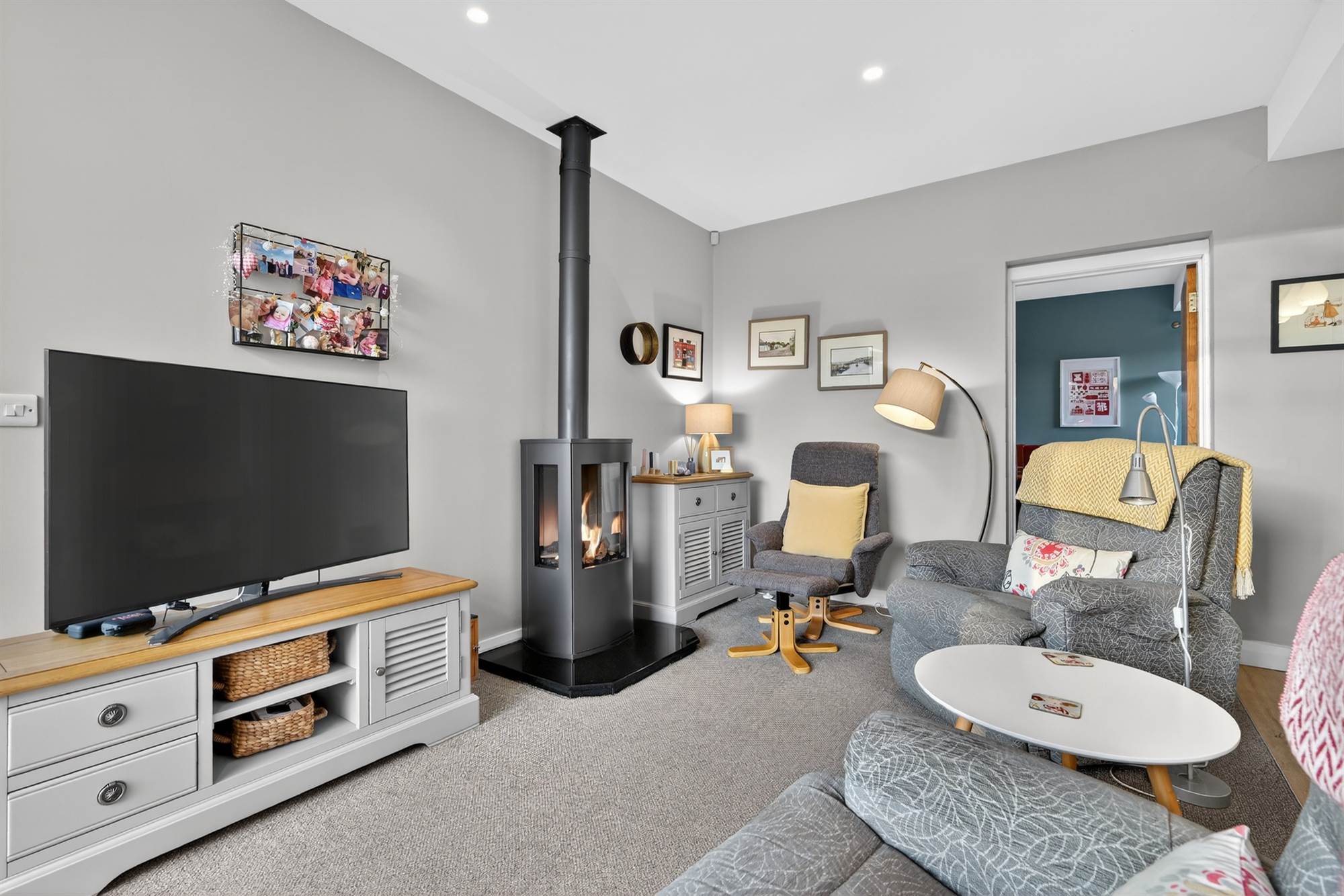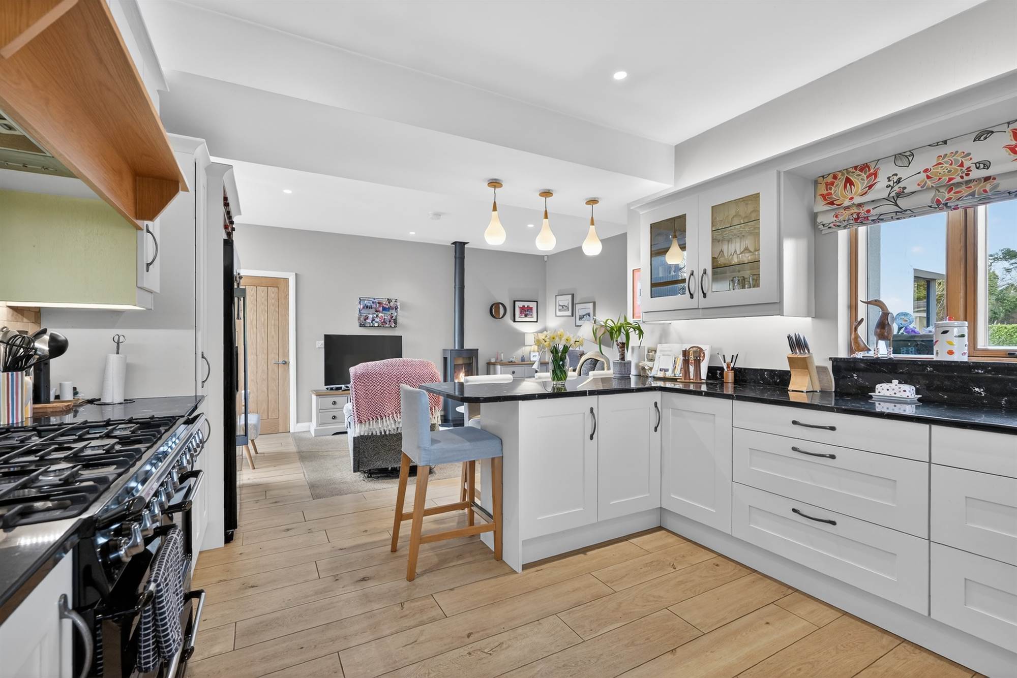 'Dru' gas fired stove. Open plan to: