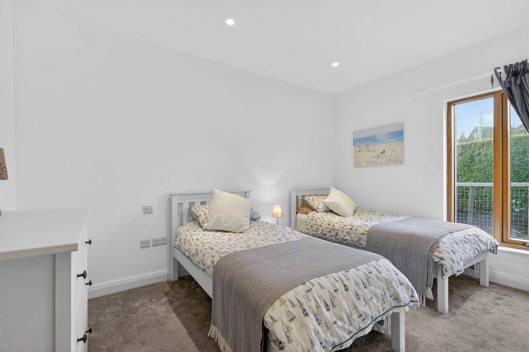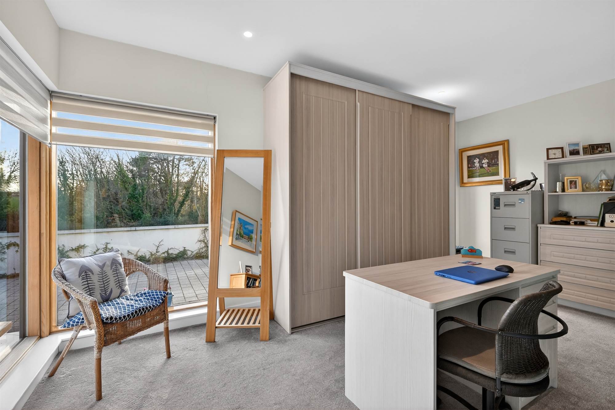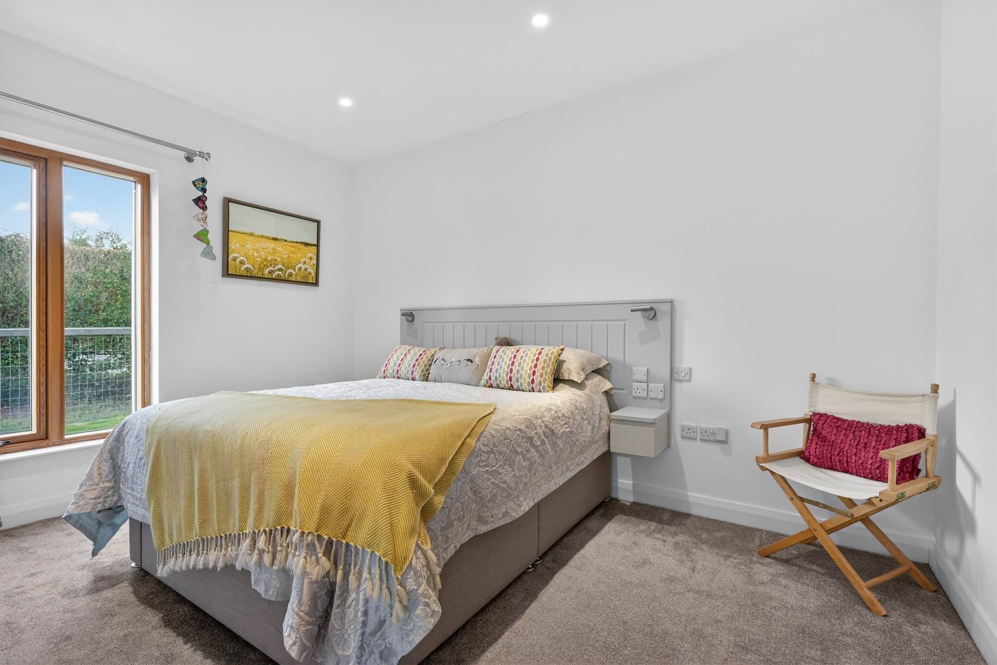 At present used as study/dressing room. Built-in robes with matching drawers with shelving above. Floor to ceiling picture window overlooking countryside.