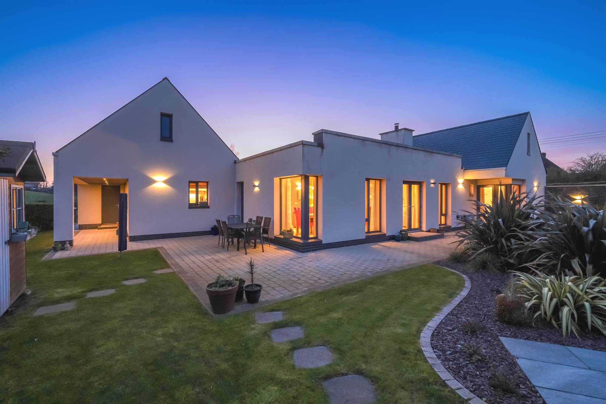 Constructed approximately 10 years ago with an uncompromising commitment to quality, this striking single storey detached home extends to around 2,200 sq ft and offers a superb blend of modern design, generous proportions, and a highly desirable setting.