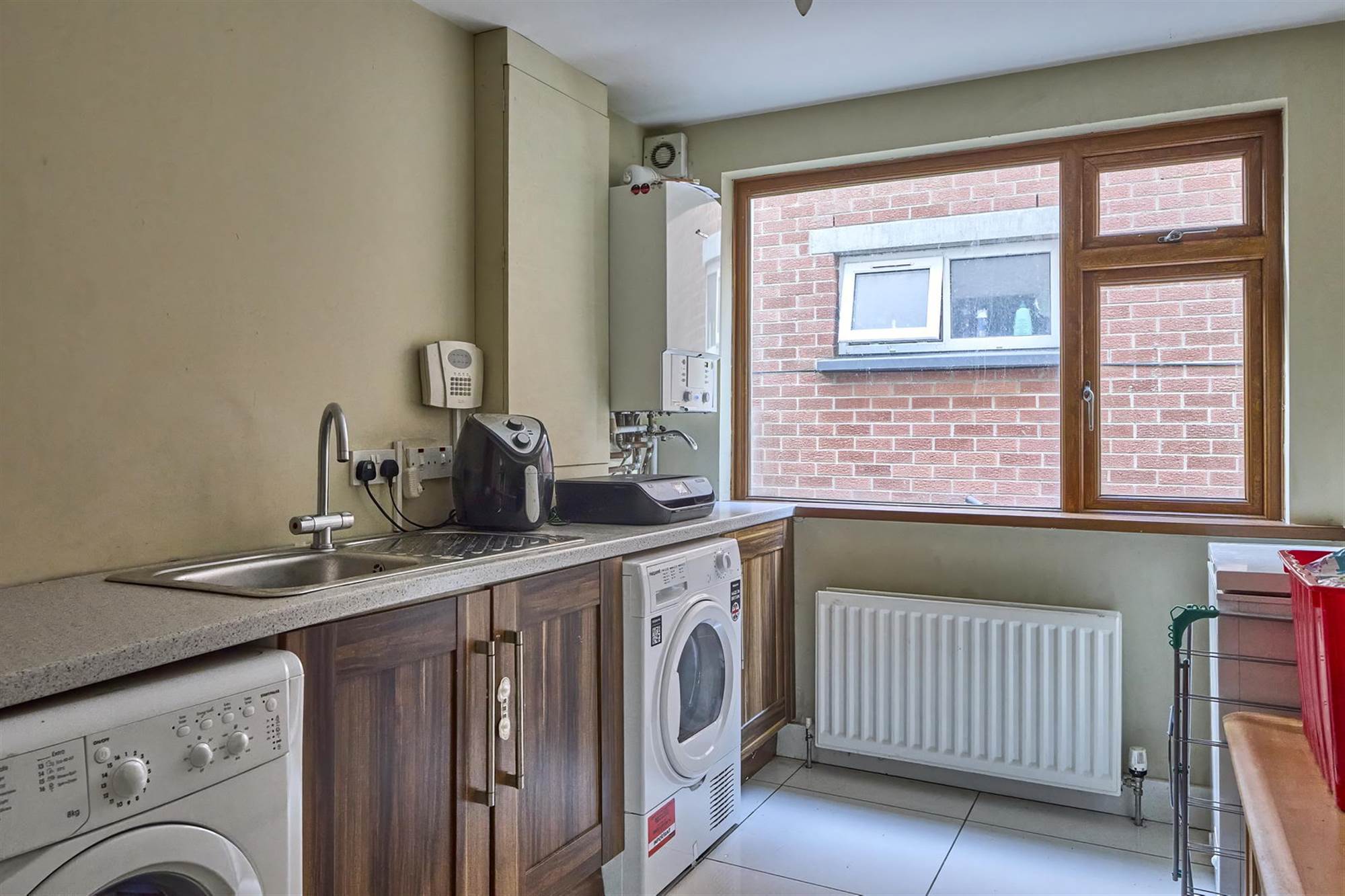 Range of high and low level units, plumbed for washing machine, space for dryer, stainless steel sink with drainer and mixer tap, Worcester gas fired boiler, ceramic tiled floor.