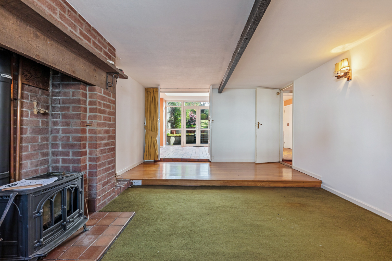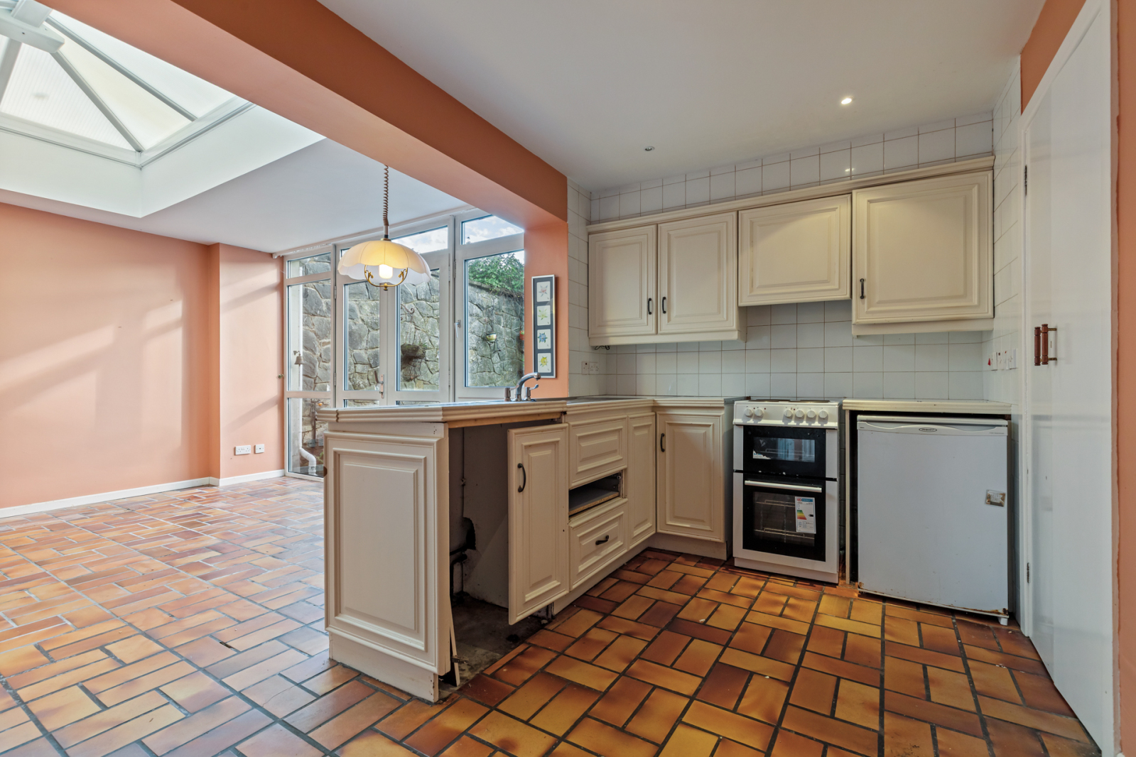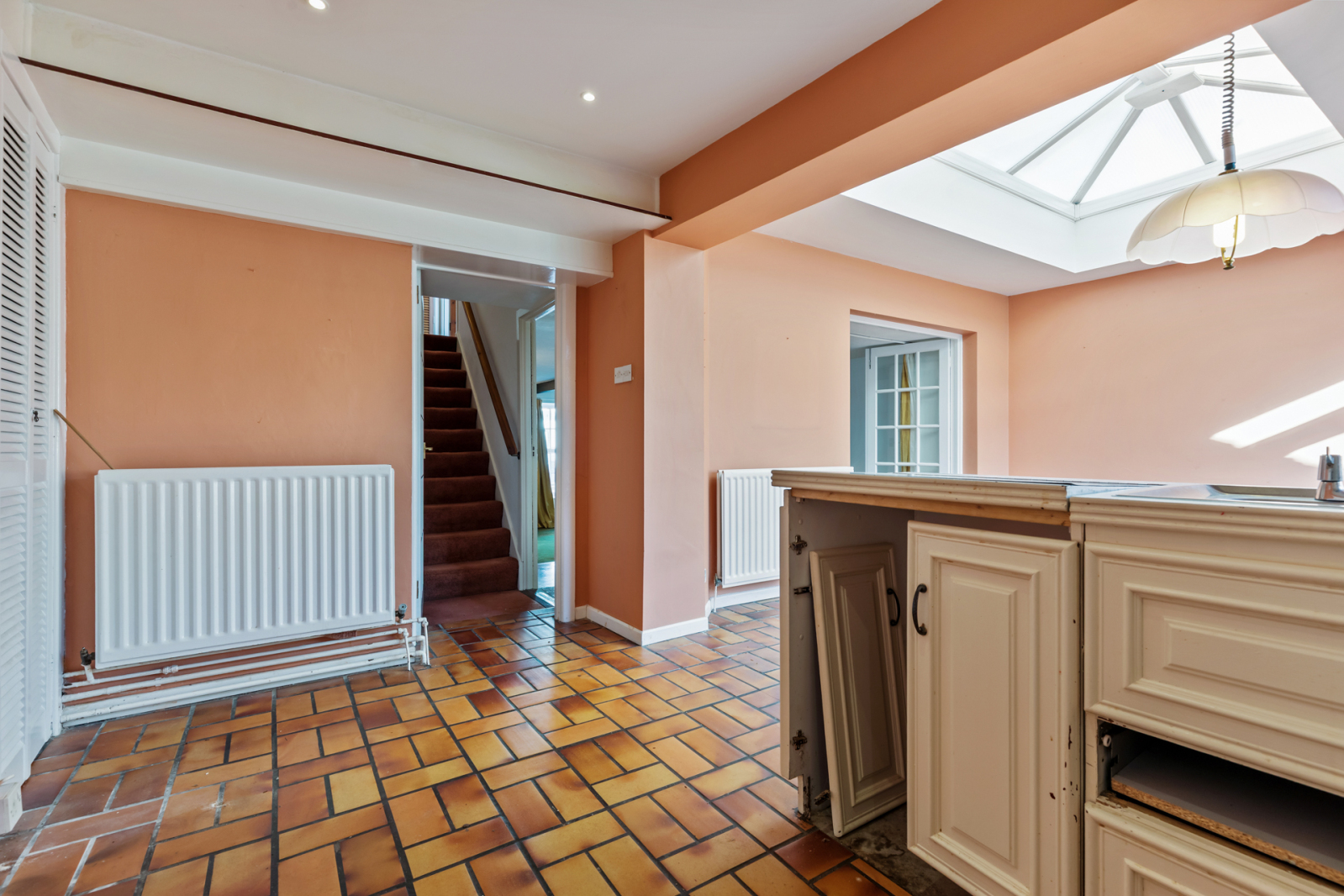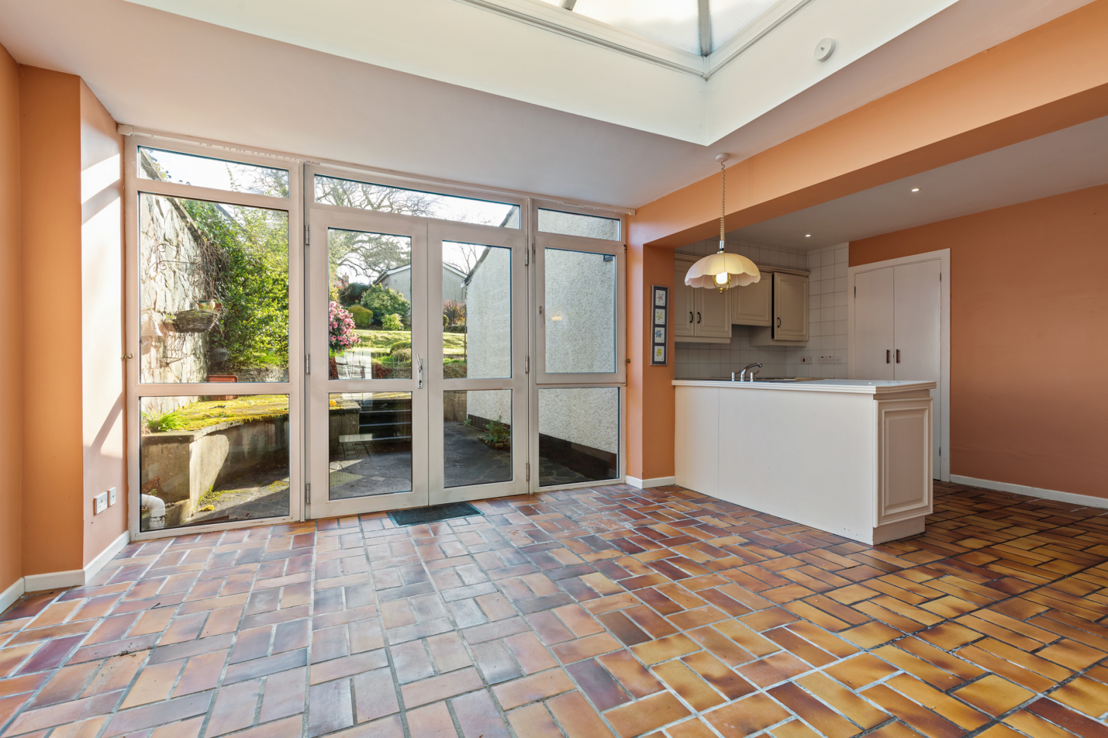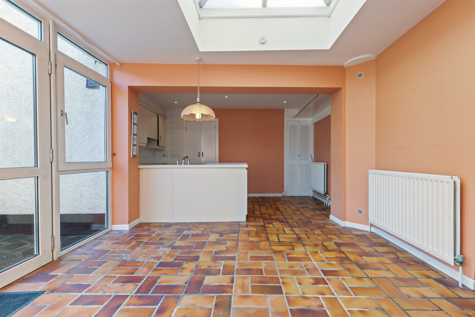 Range of high and low level units, French door to patio and garden, built in storage cupboard, gas fired boiler.