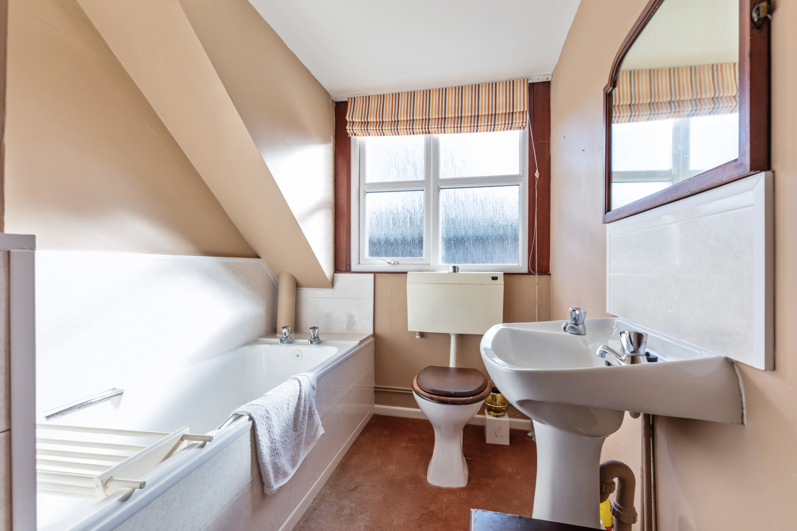 Panelled bath, pedestal wash hand basin, low flush WC