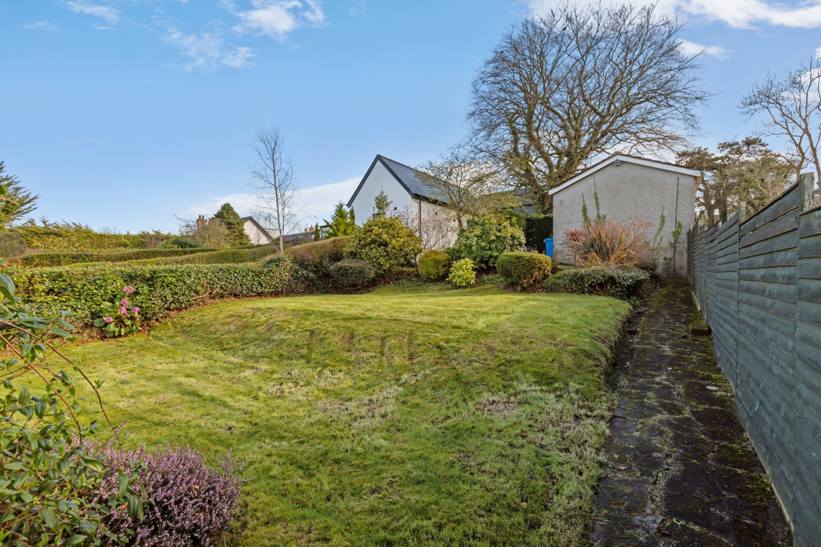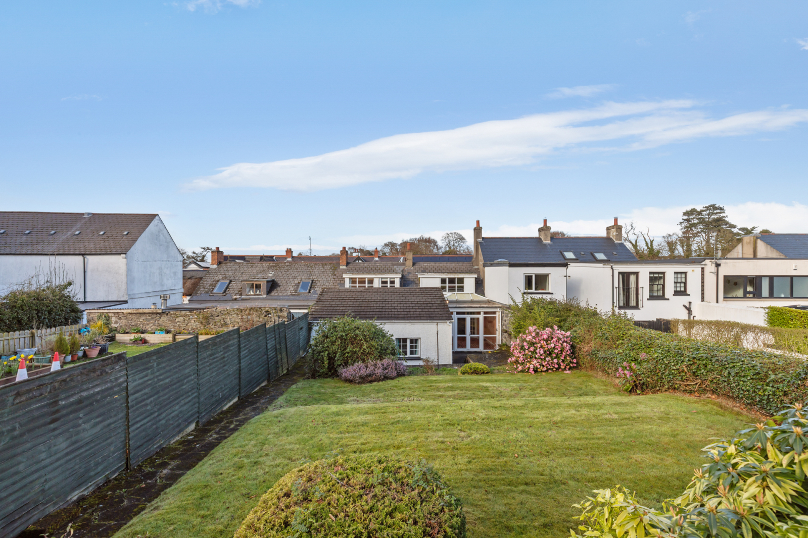 Good sized, enclosed, tiered rear garden in lawn with mature shrubs. Off street parking for two cars.
