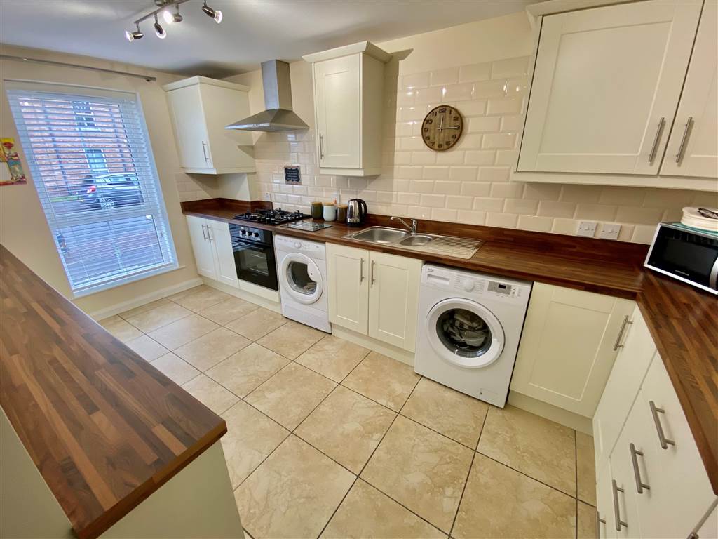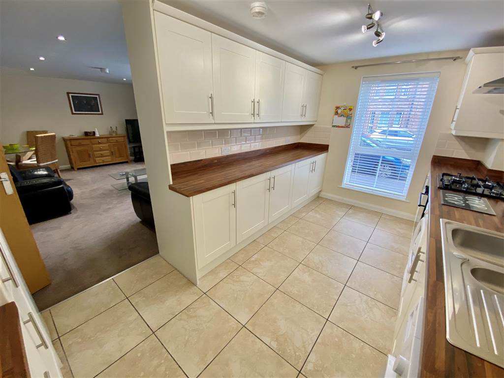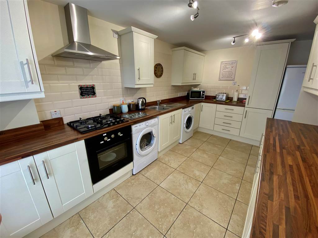 Kitchen: Range of high and low level units with wood effect worktops. Built in gas hob, electric oven and chrome extractor hood. Plumbed for washing machine. Plumbed for dishwasher. Tiled floor. Spot lighting.