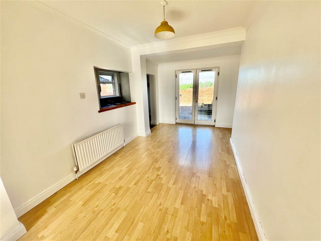 Laminate wood flooring. French door leading to rear garden