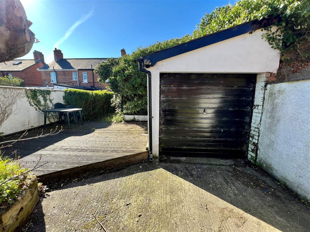 Small front garden area, driveway parking, excellent rear garden with lawn and raised decking area, detached garage with access from Ardenlee Drive to the rear.