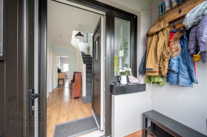 Terracotta tiled floor, cloaks storage,