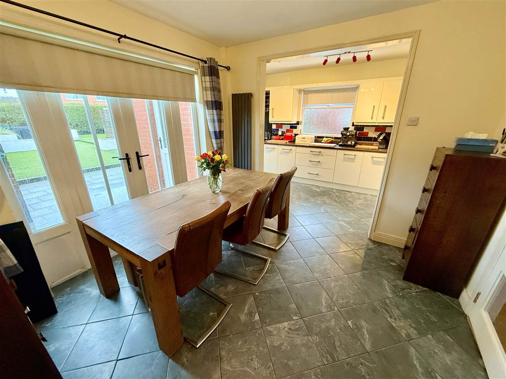 Open to kitchen. French patio doors to rear garden.