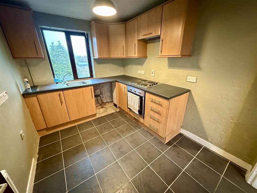 High and low level units with built in oven and hob, plumbed for washing machine. Walk in pantry