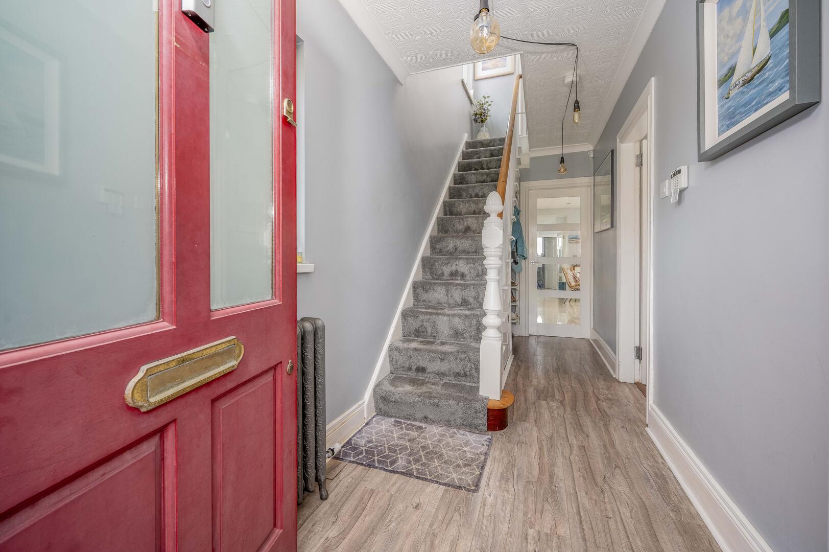 Hardwood glazed front door into spacious reception hall.