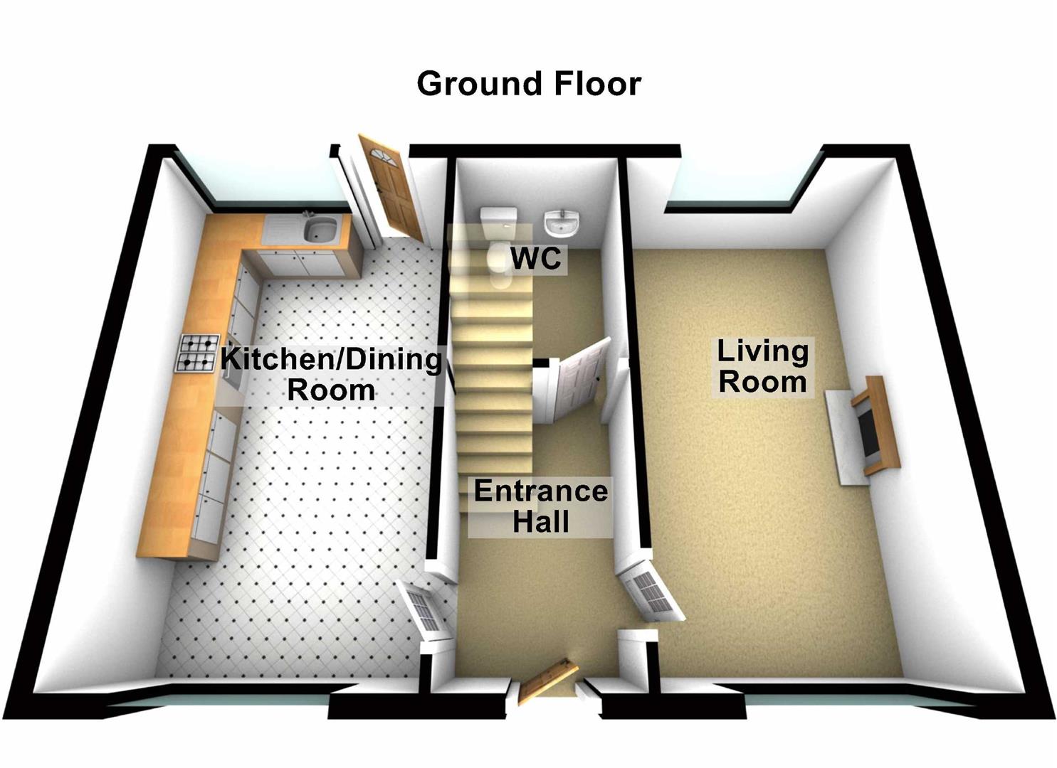 The property comprises living room, kitchen with dining area, downstairs w.c, three bedrooms and a family bathroom. Outside the property further benefits from an enclosed rear garden laid out in artificial grass.