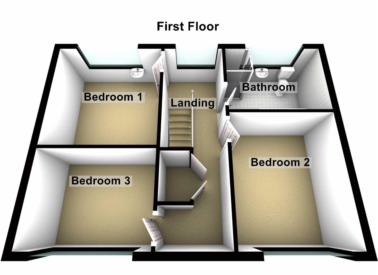 Bedroom Three 10'8" X 8'5" (3.25m X 2.57m)