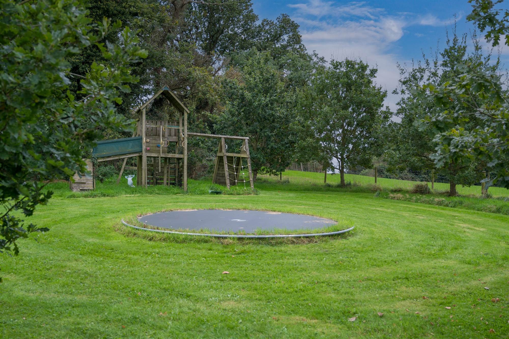 Gardens extending to 2 acres surrounding the property. Oak trees, apple trees, various specimen trees, extensive lawns with bordered hedging and landscaped beds in bushes. Patio sun terrace to rear, kids play area to rear of garden. Front gardens and extensive parking and turning area for several cars.