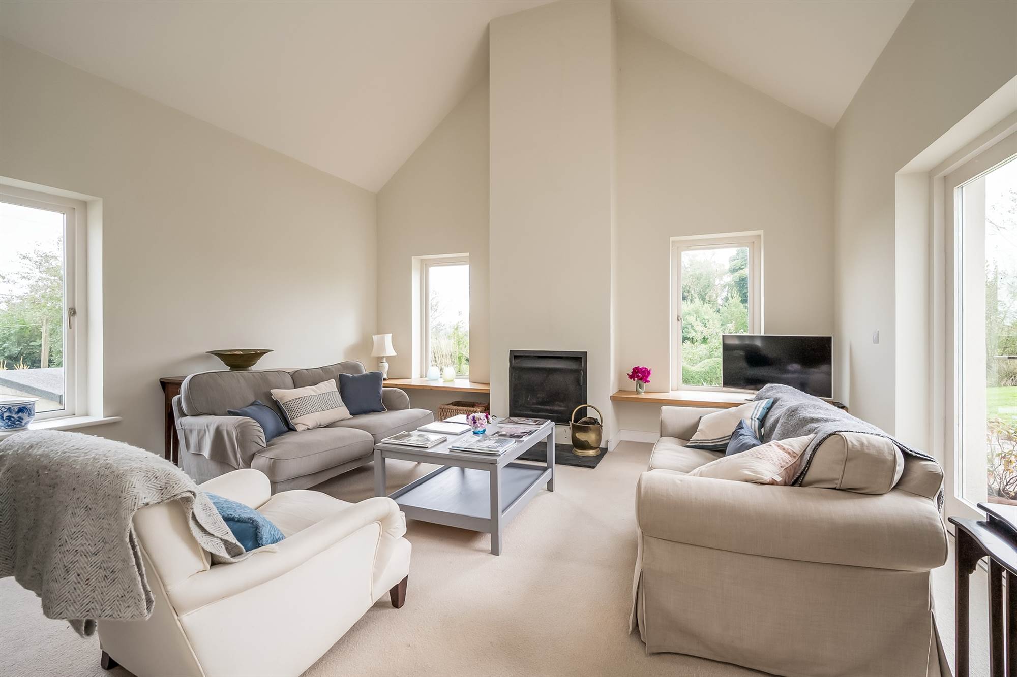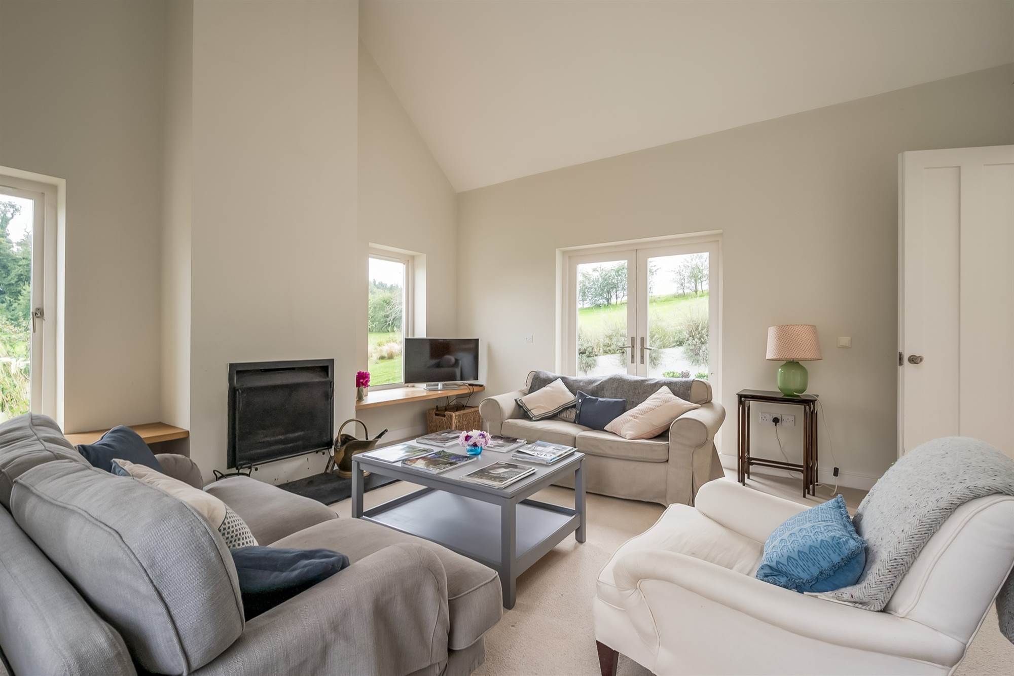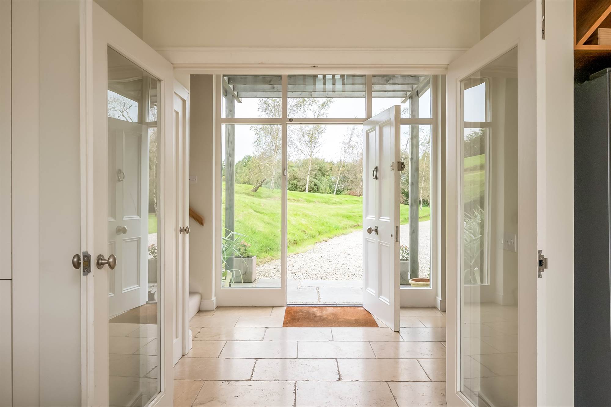 Tiled floor, cloaks cupboard. Double doors and glazing to . . .