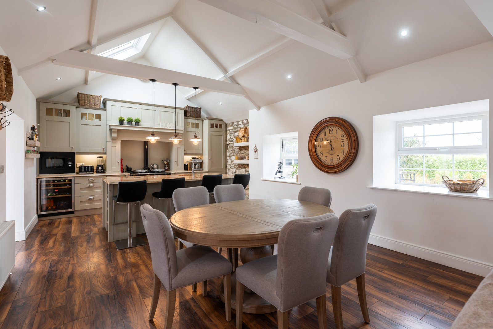 One of the main selling points is the suburb open plan fitted kitchen which is open to a dining and sitting area with vaulted ceiling with access to patio area which leads to a cosy living / dining room with twin stove. There are three well-proportioned bedrooms, with the principal bedroom benefitting from views over rolling countryside. Additionally, there is a utility room, downstairs WC and luxury white suite jacuzzi bathroom