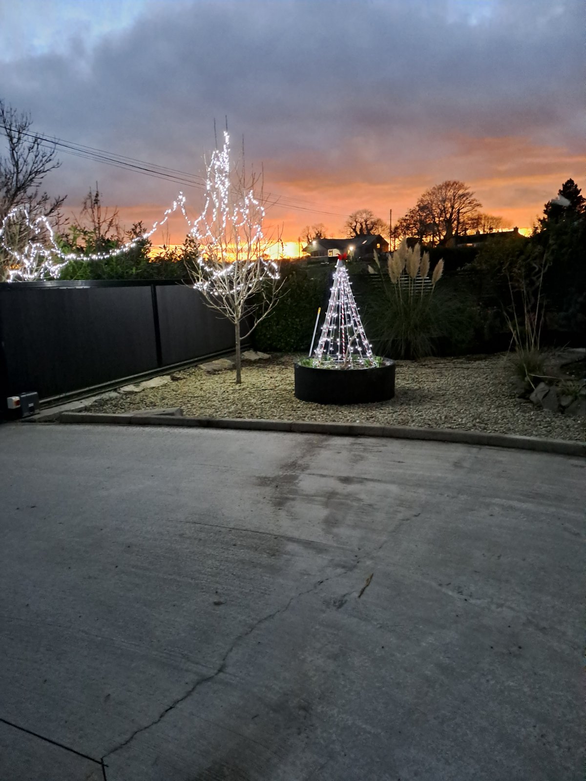 PVC oil storage tank; raised flower bed and rockery; a rear gravelled drive leads off the country road to provide access to the concrete yard.