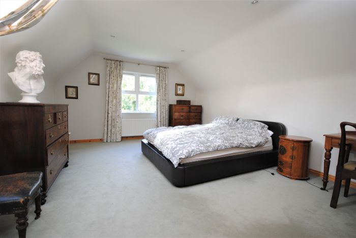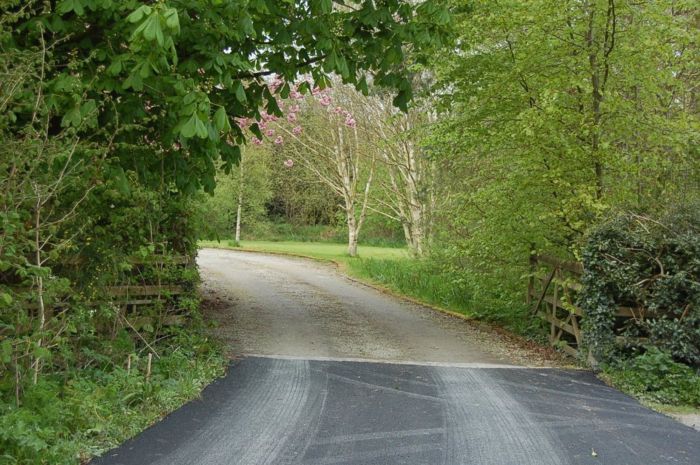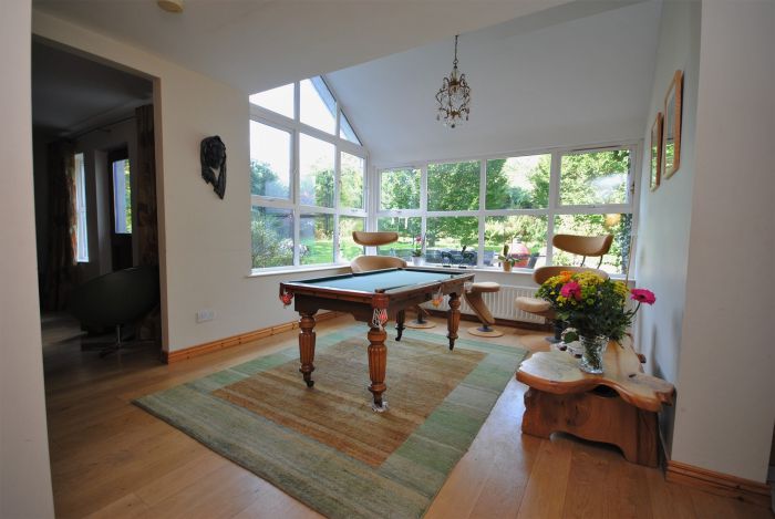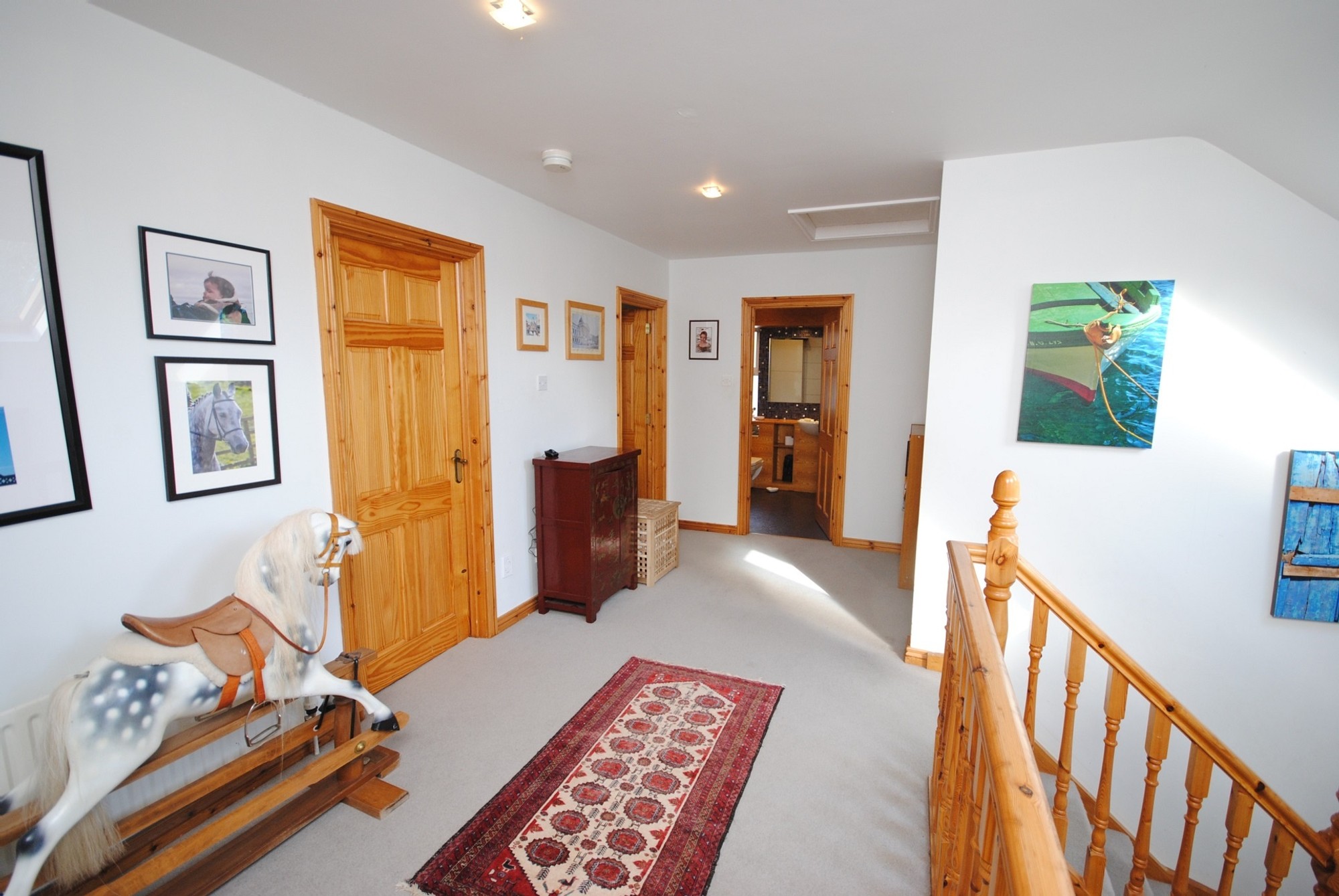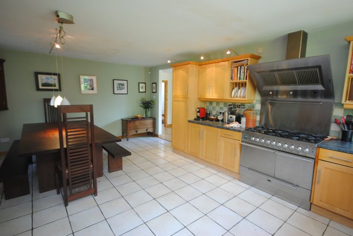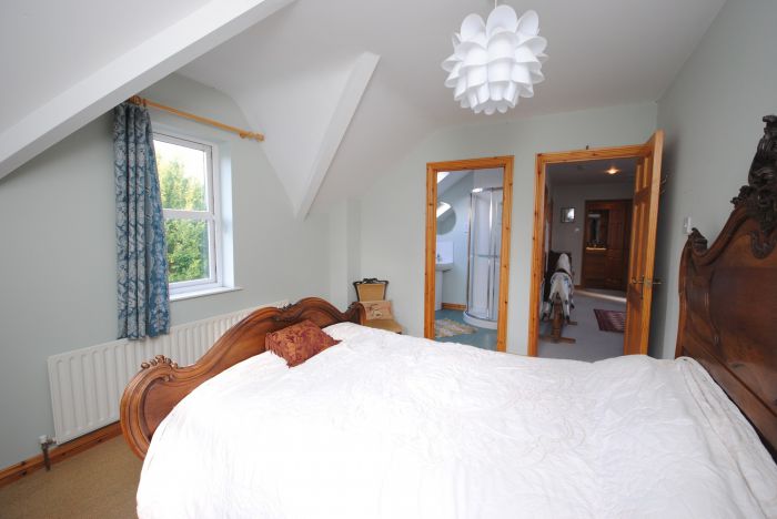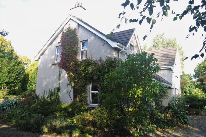 The newly laid tarmac lane leads to a gravelled driveway with parking to the front of the house and adjacent to the integral garage. To the front, the gardens are mainly in lawn surrounded by native trees and dotted with younger specimen trees. To the rear there is a wooden decked area with outdoor lighting leading to a paved terrace with granite steps leading to upper lawn with shrub beds and trees bordered by a stone wall.