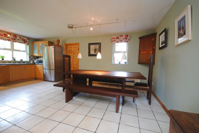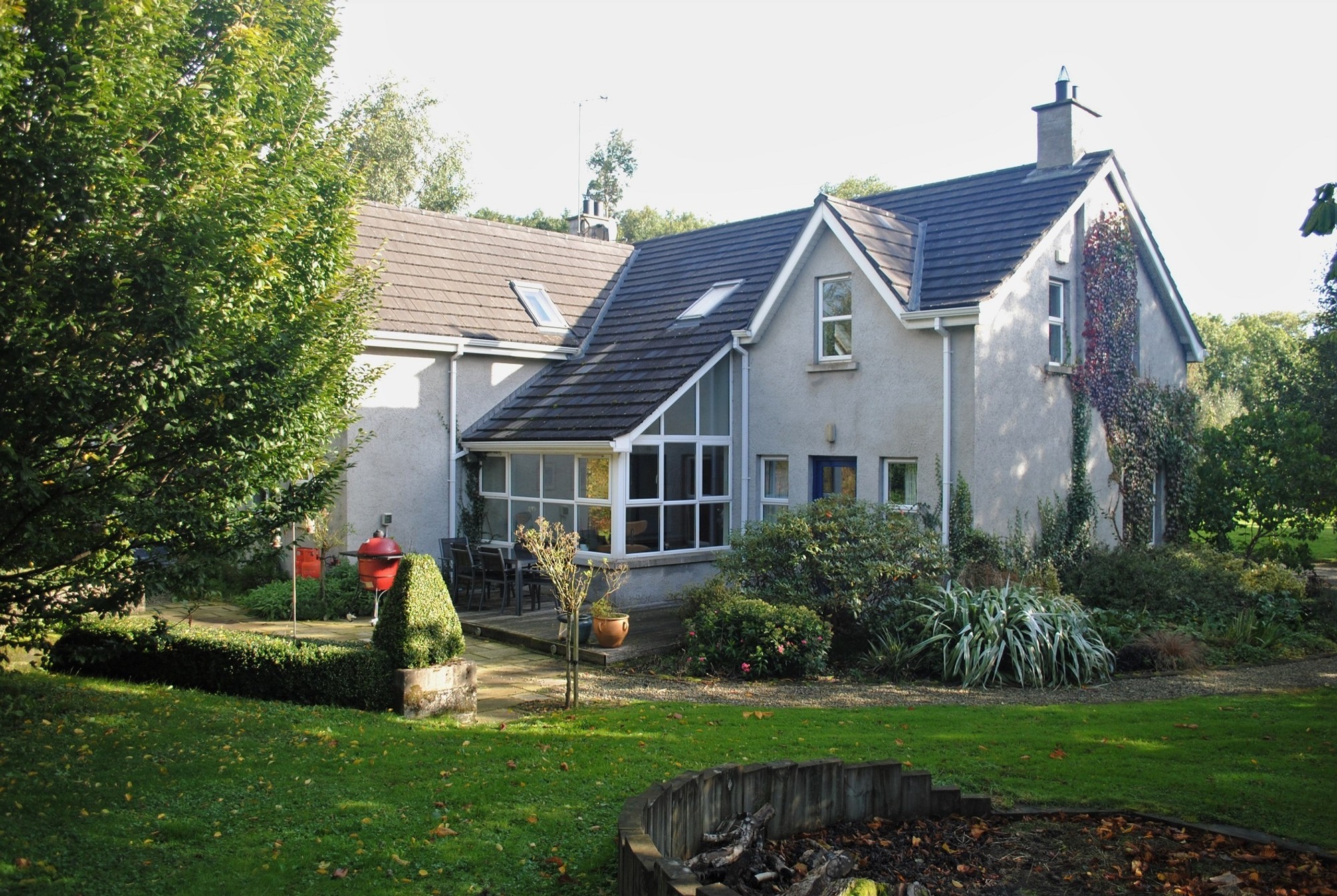 Approached by a country lane, surrounded by mature native trees and bordered by the Ballynahinch River, this is a wonderful property in a secluded setting of around one and a quarter acres. Although the only sounds you are likely to hear are the birds in the trees and the flowing of the river, it is not an isolated property with other houses sited off the same lane while the surrounding trees make it feel like you are in a clearing in the middle of the woods. With the space the site has to offer, there is ample room for keeping chickens or other small animals and along with the raised vegetable beds adds to the potential of a true country lifestyle.