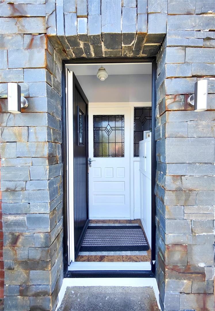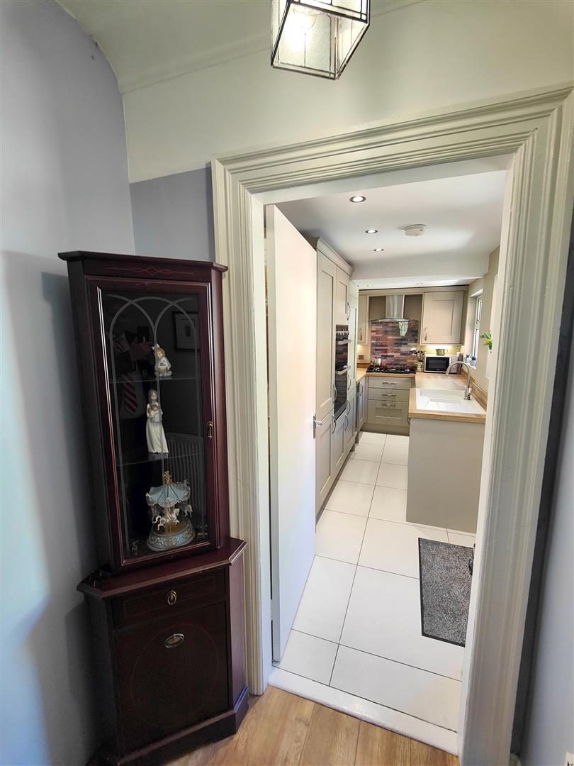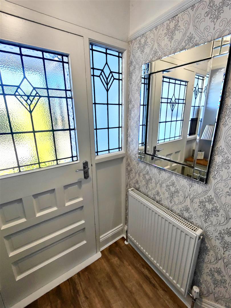 Composite entrance door, wood laminate floor, panelled radiator, understairs storage.