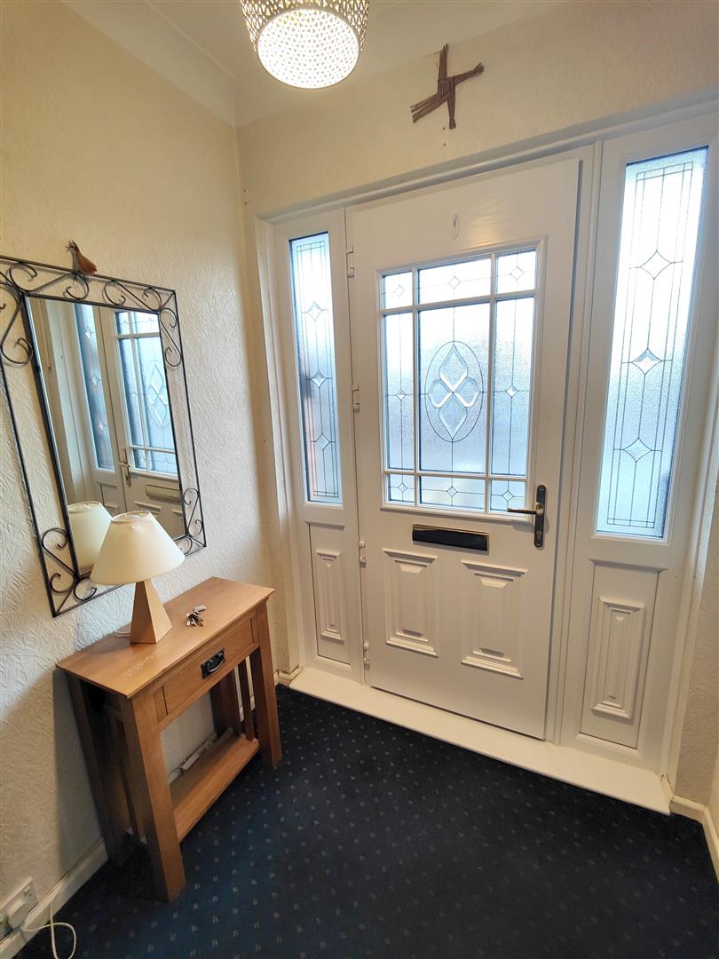Upvc double glazed entrance door, under stairs storage. Panelled radiator.
