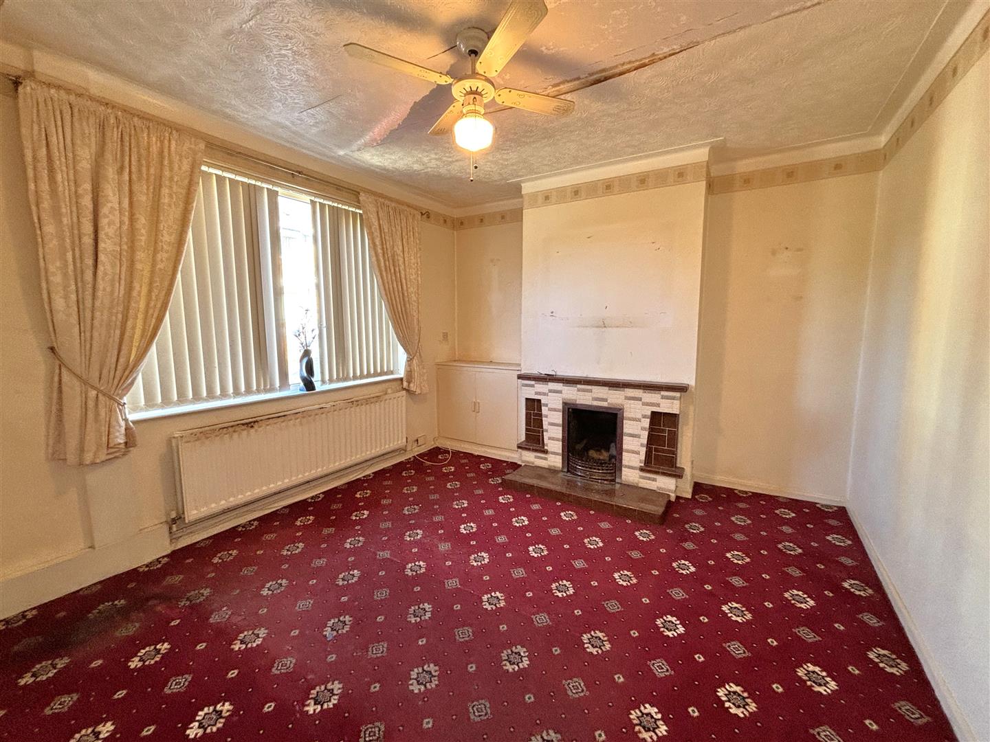 Tiled fireplace, panelled radiator.
