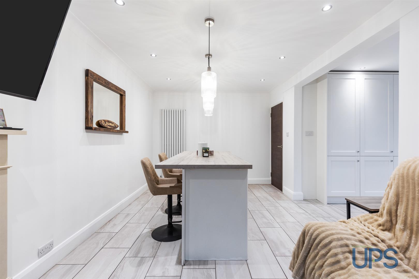Attractive fireplace, island unit, ceramic tiled floor, featured radiators, uPvc slide door to rear.
