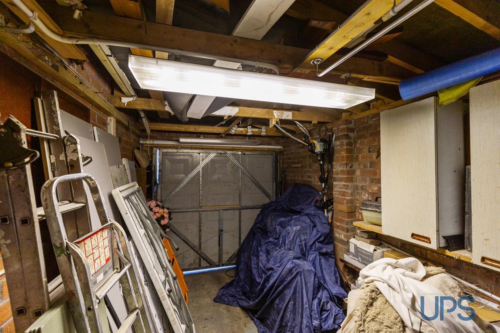 Up & over door, plumbed for washing machine, tumble dryer space.