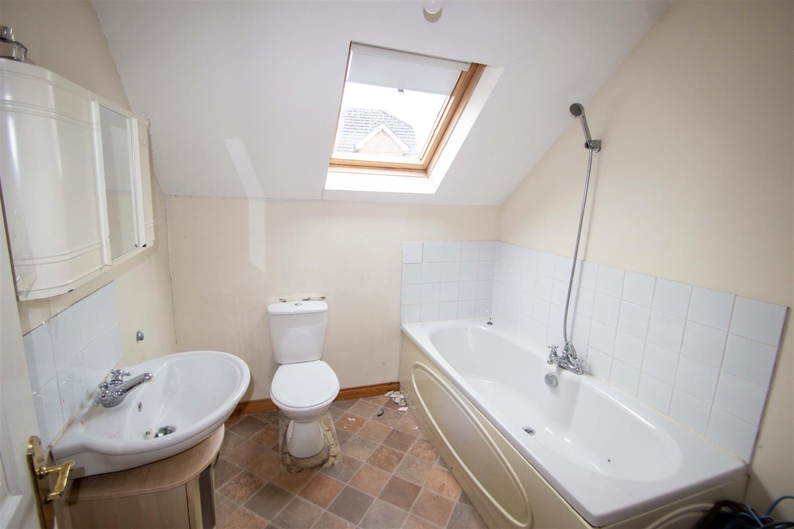 Low flush w.c, shower cubicle, pedestal wash hand basin, velux window.