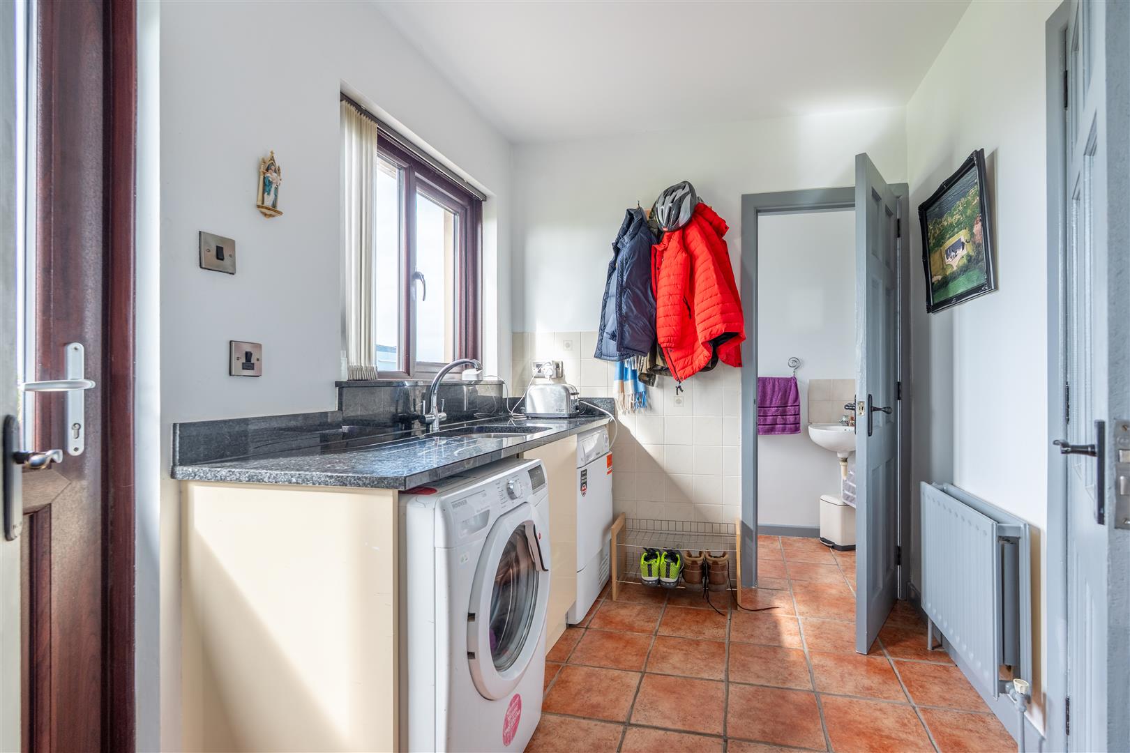 Utility room with matching kitchen units, work surfaces and space for washing machine and tumble dyer