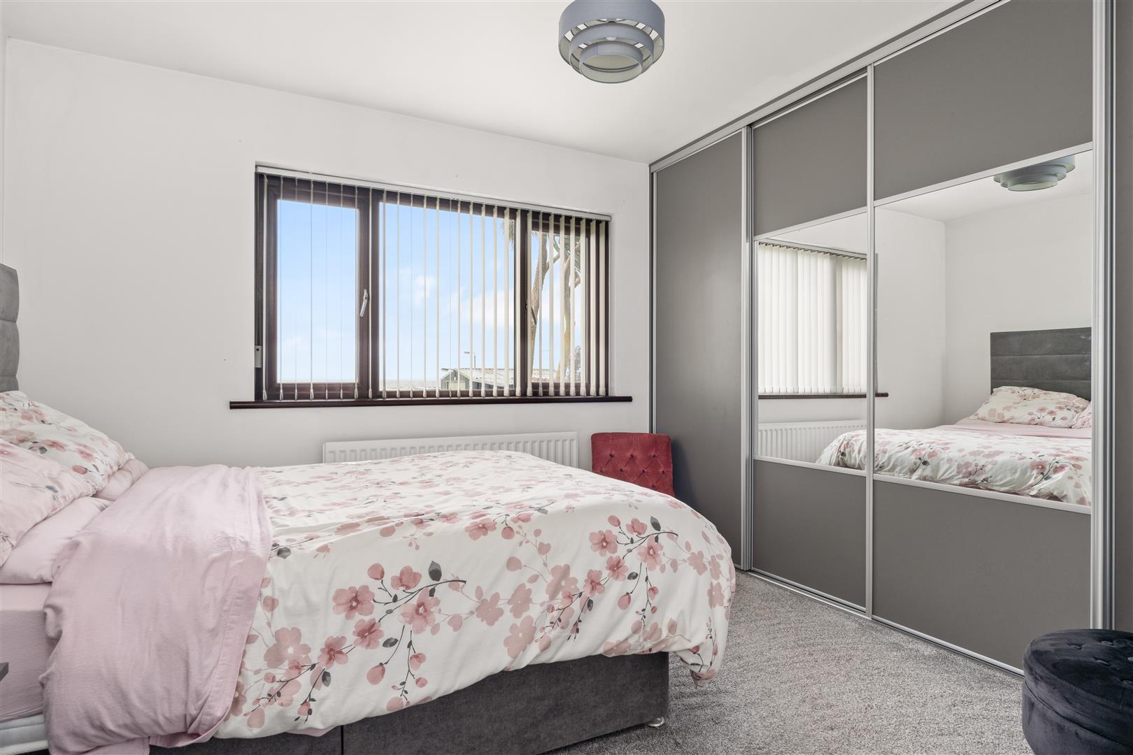 Partially enclosed front garden with neat lawns, mixed stone bedding and 4Ft timber fencing. Brick Pavia and asphalt driveway with space for 10+ cars and additional parking to the rear. Canopy entrance with tiled flooring.