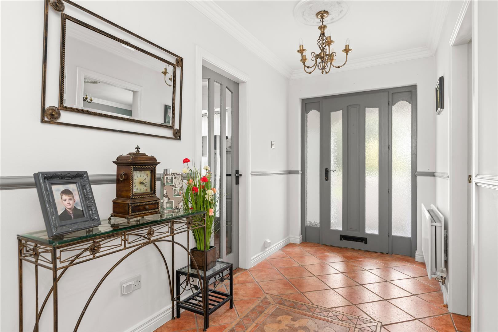 PVC double glazed hardwood door with sidelights to large welcoming entrance hall with fully tiled floor. Double radiator.