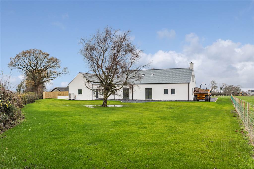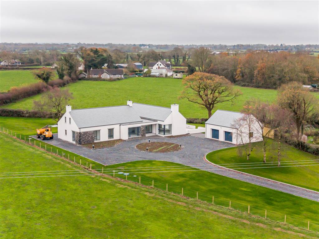 Boasting road frontage with private access via entrance pillars from the Dungonnell Road, this property benefits from a sweeping driveway at approx. 170metres leading to this premium new build home and large detached double garage at an (additional 624 Sq Ft). The property also benefits from generous gardens to the front, side and rear with a private patio area beyond sliding patio doors from the open plan living area. Finished to an exceptionally high standard turnkey finish, the main property comprises of four large bedrooms, two of which have en-suite shower rooms with the ground-floor master bedroom also boasting a large walk-in dressing room. A bright and spacious hallway provides an impressive entrance, in addition to the main living room the property comprises of a large open plan kitchen / dining and family living area with large sliding patio doors providing access to property exterior. A convenient pantry area is located within the kitchen, spacious utility, two large family bathrooms and rear hall with ground floor W/C.