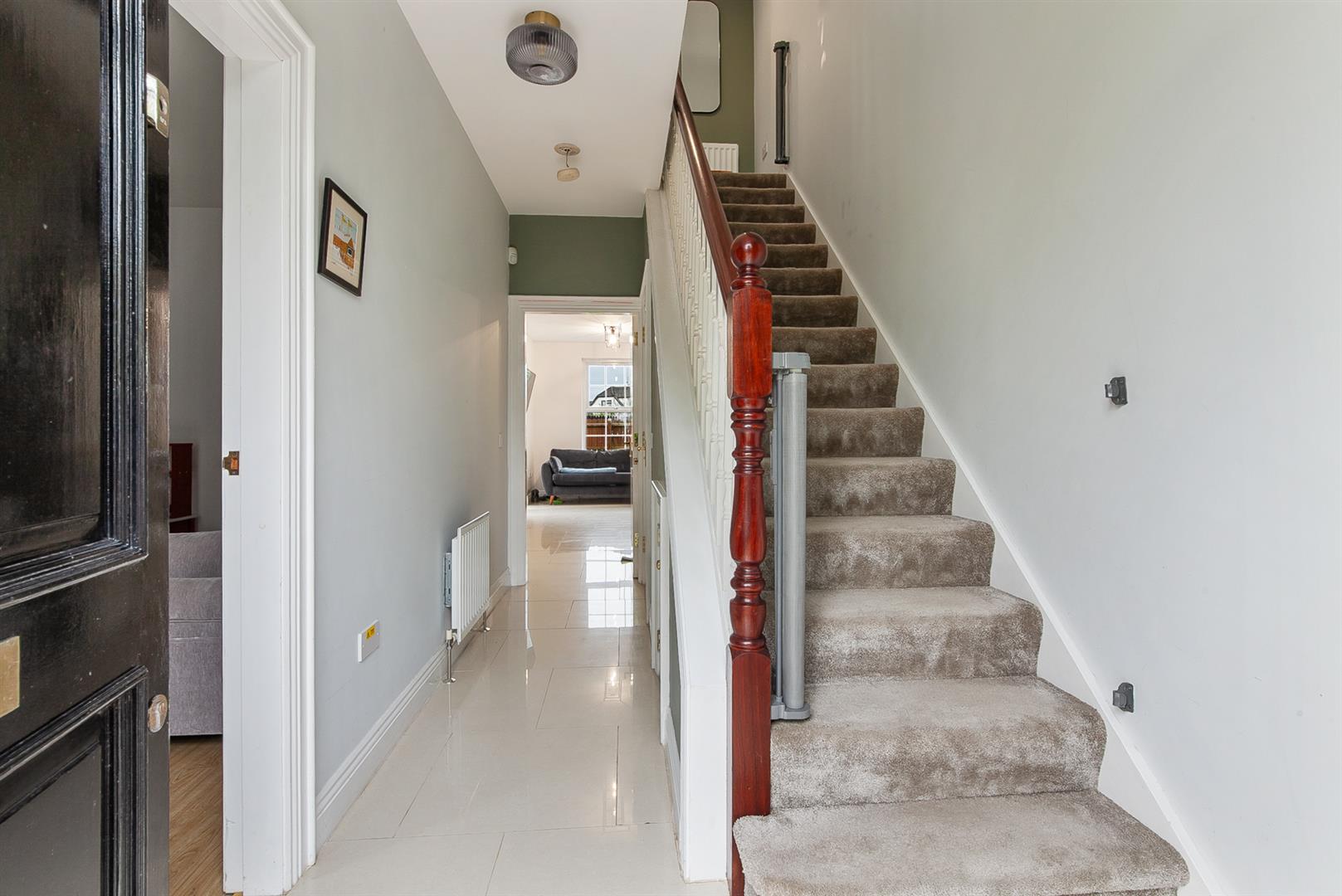 Hardwood front door with matching double glazed fanlight over. Tiled floor. Stairwell to first floor. Feature height ceiling, continuing throughout remainder of home. Access to under stairs storage.