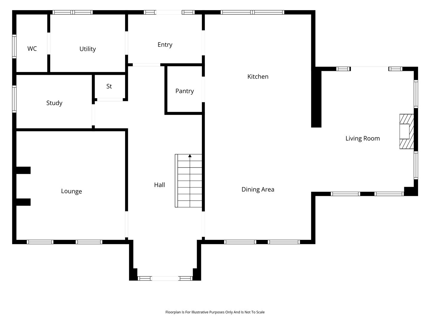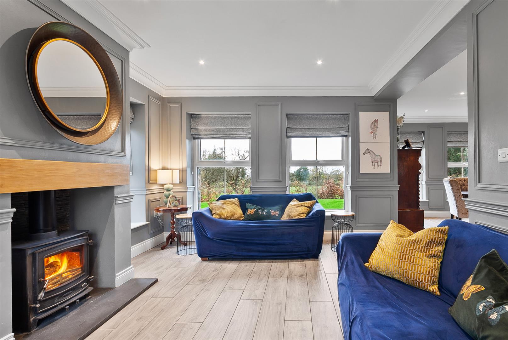 Triple aspect windows. PVC double glazed French doors leading to rear garden. Slate clad inglenook recess with cast iron wood burning stove on slate hearth. Tiled floor.