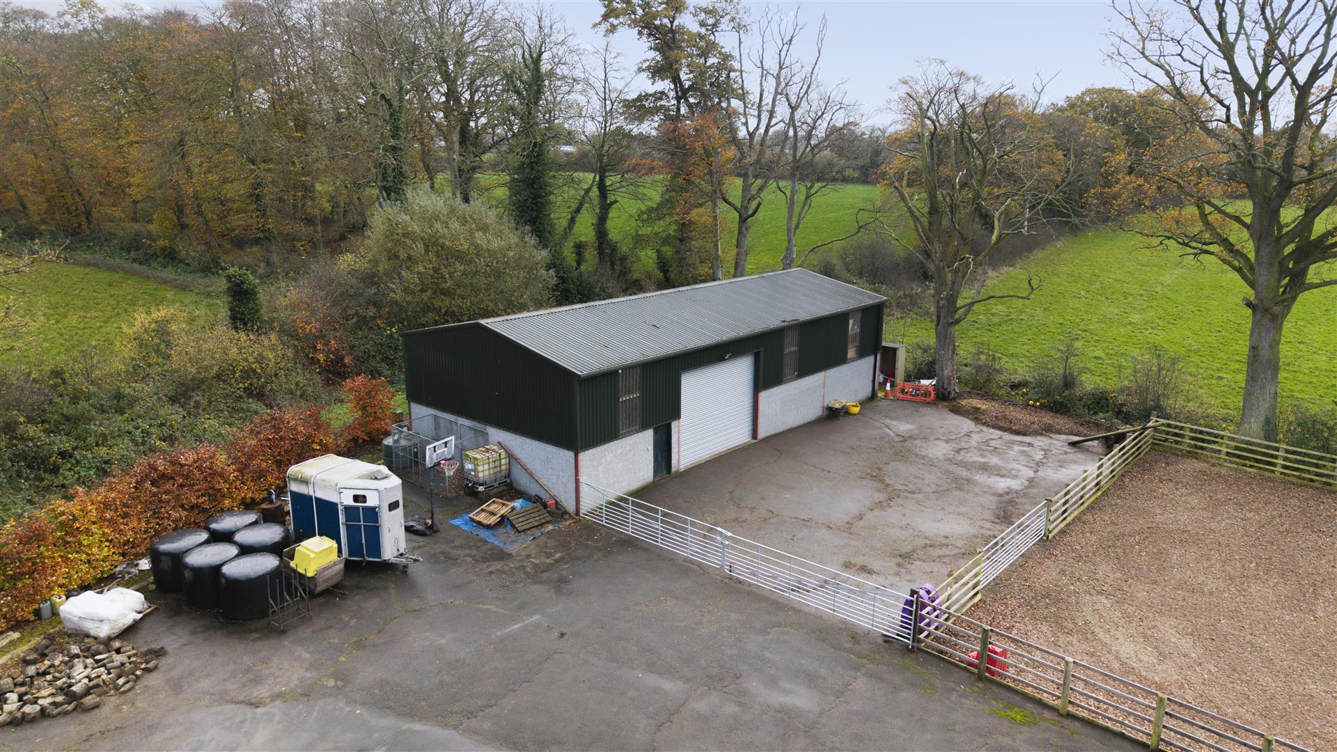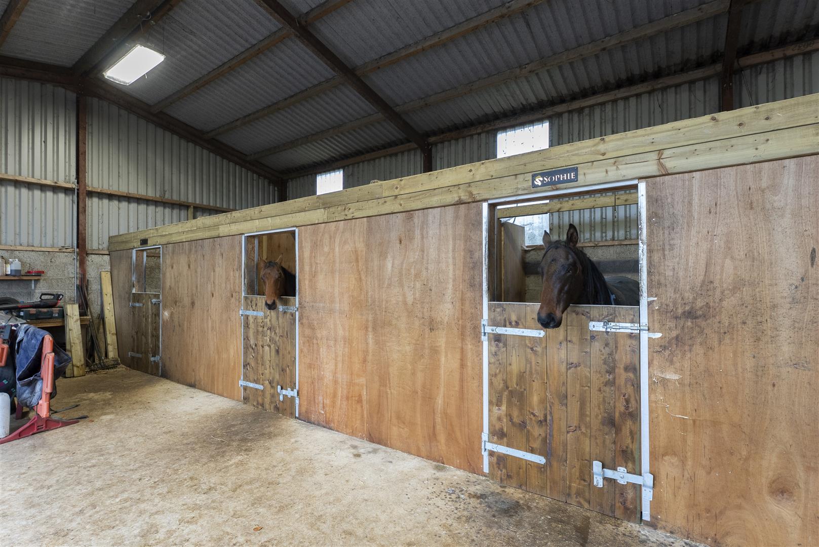 Power operated roller shutter door. Separate service door. 5 stable bays. Part first floor mezzanine area. Power and light.