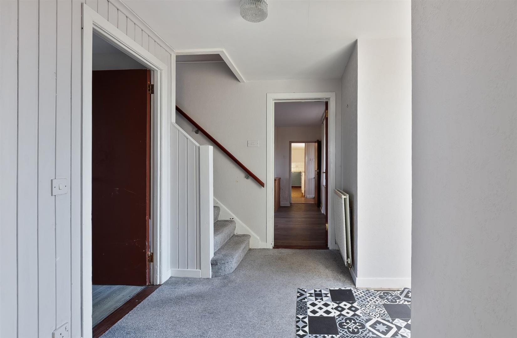 Hard wood glass panelled front door. Tiled floor to entrance porch area. Stairwell to first floor.